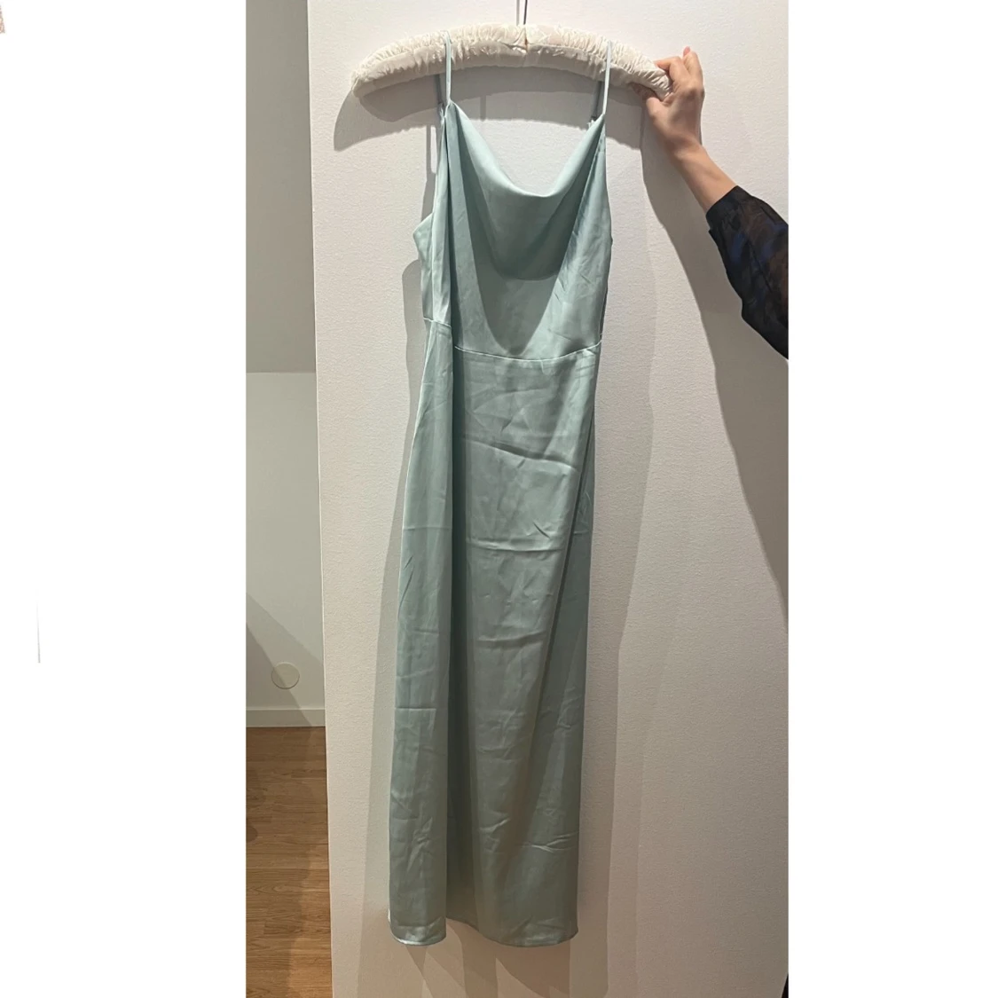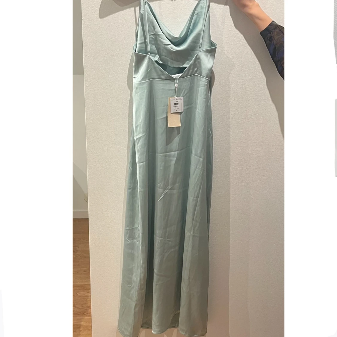 Supersnygg ljusblå långklänning från Vila med tunna axelband och draperad urringning. Aldrig använt, storlek 38. Köpt för 449. KÖP BARA GENOM POSTNORD!!!