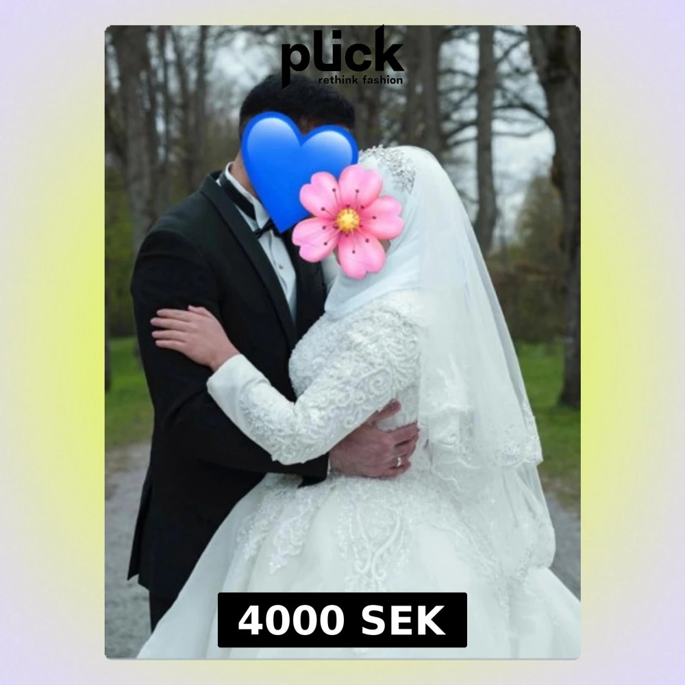 Magisk vit bröllopsklänning med lång släp, täckt av vackra spetsdetaljer och broderier. Klänningen har långärmade ärmar, och är heltäckande. Kjolen är voluminös och ger en klassisk prinsesskänsla. Perfekt för dig som vill ha en tidlös och elegant look. Klänningen är använd vid ett tillfälle och i mycket fint skick. Den passar storlek M-L och kan justeras. Fler bilder kan skickas vid intresse och provning kan eventuellt ordnas.