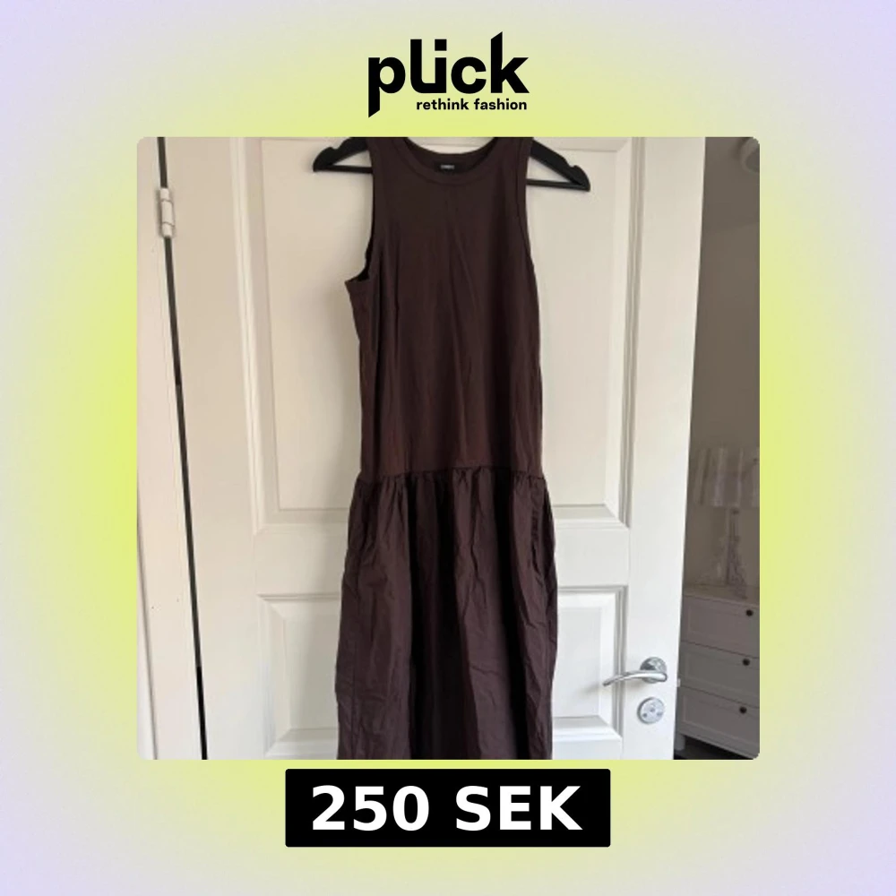 Brun ärmlös klänning från Lindex. Klänningen har lätt rynkat parti nedtill som ger lite extra volym. Så mjuk och skön och lika fin att bära som den är eller med en stickad tröja över💌