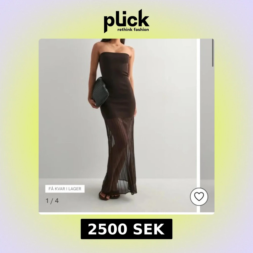 Snygg brun axelbandslös långklänning med figurnära passform. Klänningen har en transparent, plisserad nederdel som ger en cool och trendig look. Perfekt för dig som vill sticka ut med en elegant och modern stil.