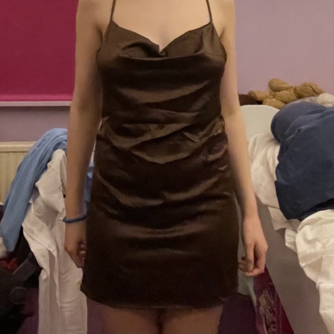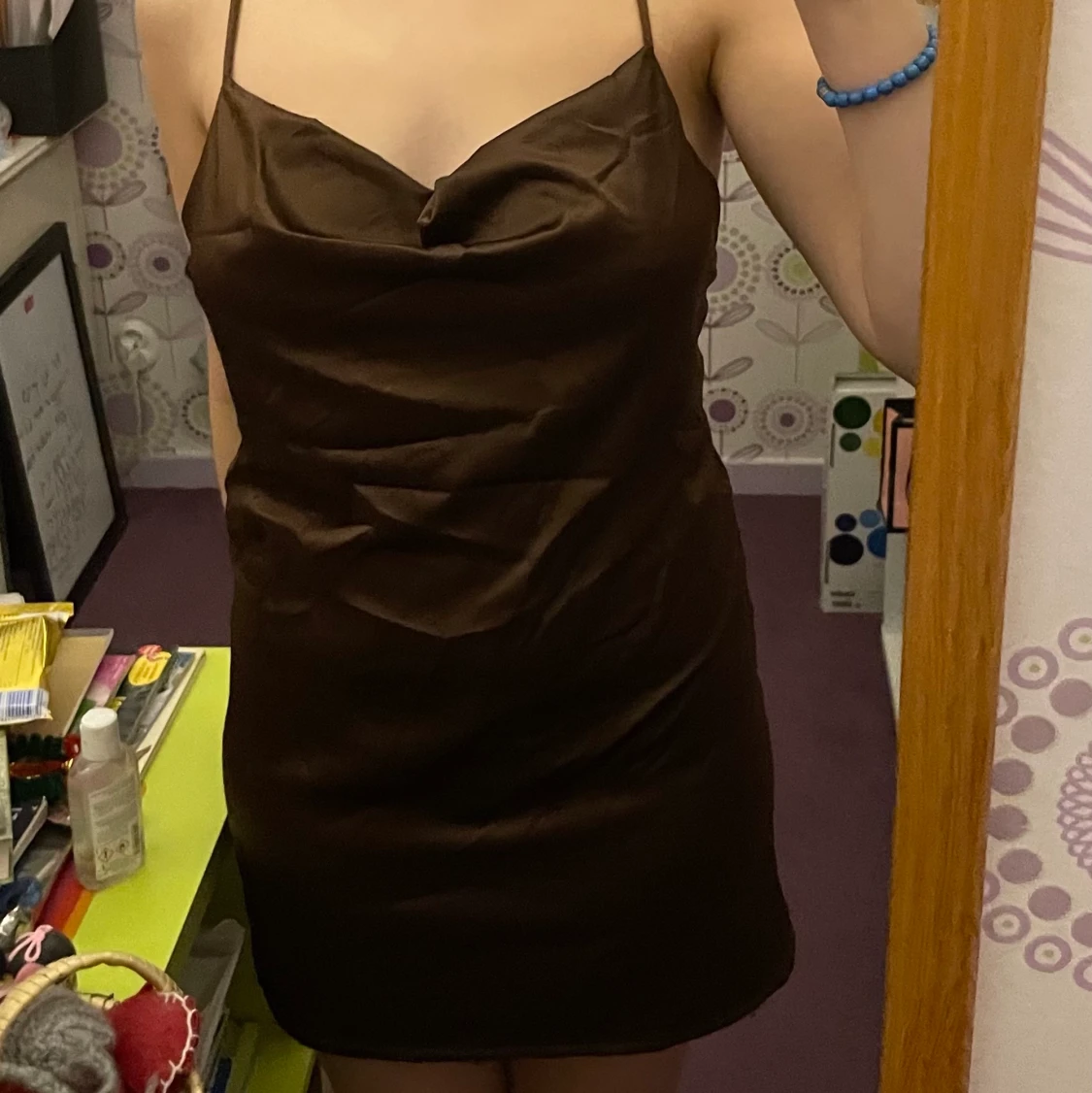 Väldigt fin och skön klänning i sidenliknande material. Helt oanvänd och köpt för nästan ett år sedan. Då den inte är använd är den i perfekt skick. Kontakta mig om du har frågor eller vill ha fler bilder💓