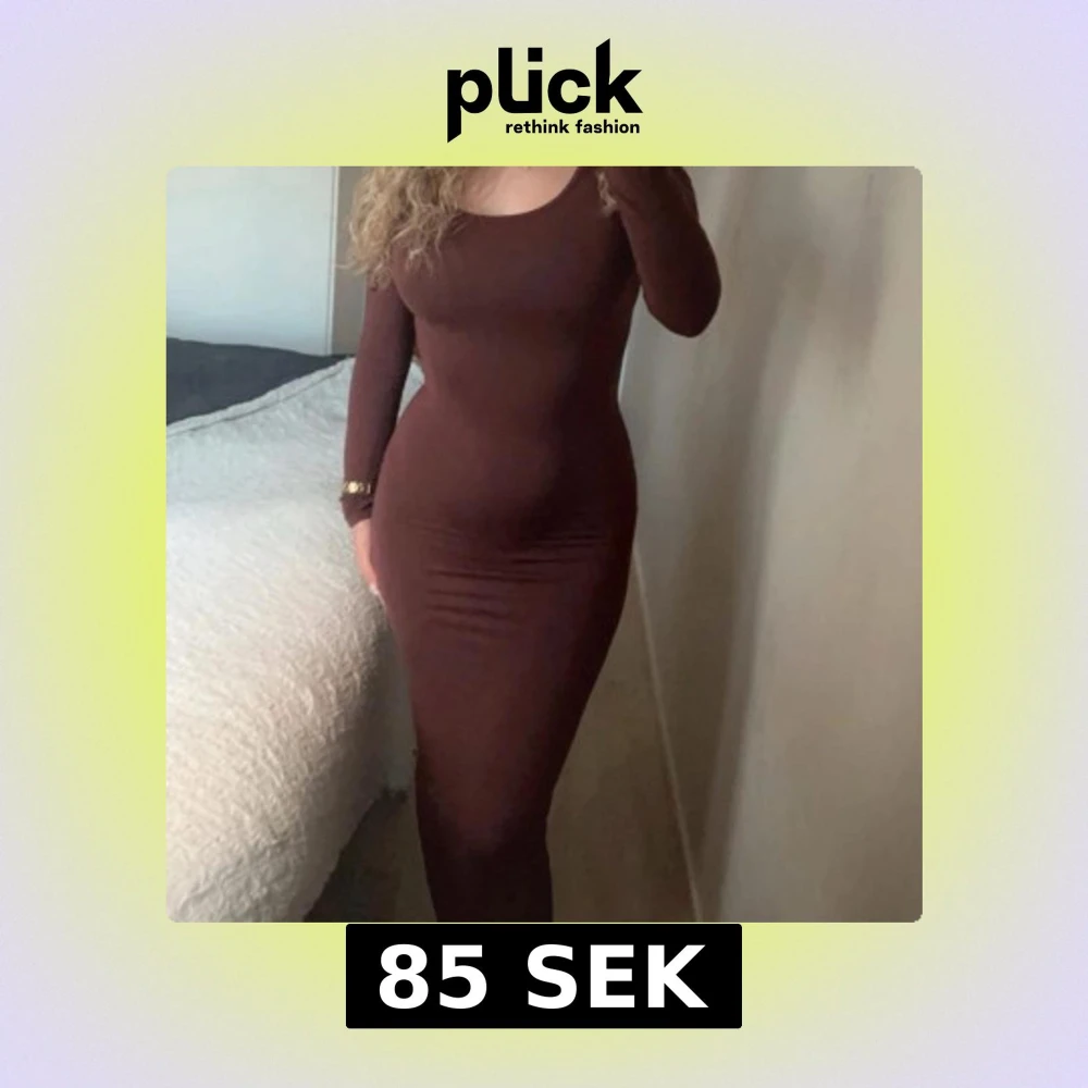 Snygg brun långklänning med långärmad design. Perfekt för en elegant look med sin tighta passform. Klänningen har en enkel och stilren stil som passar till många tillfällen.