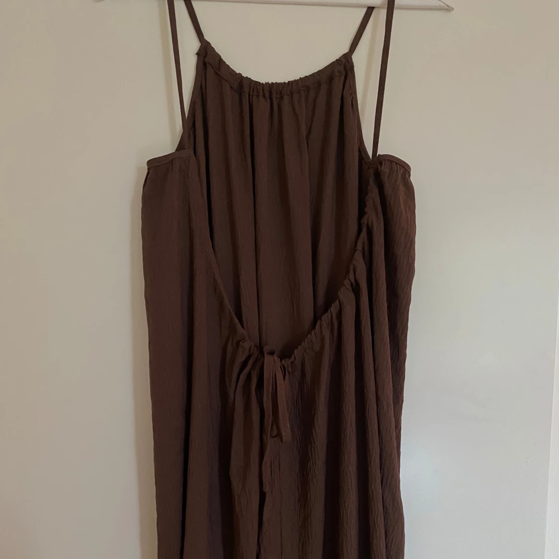 Brun långklänning med öppen rygg (går att knyta åt tightare eller ha mer urringad). NOSIZE