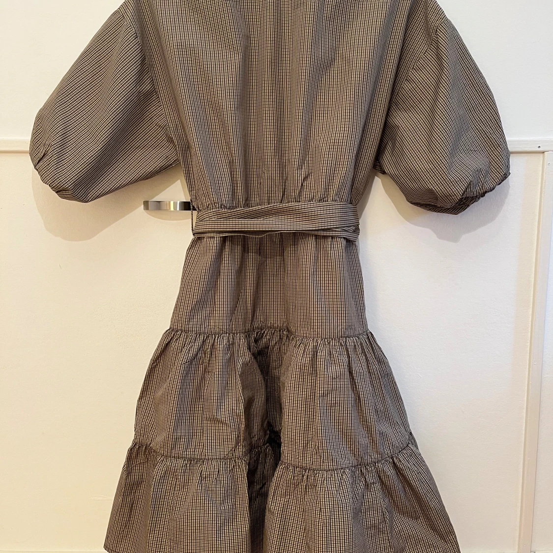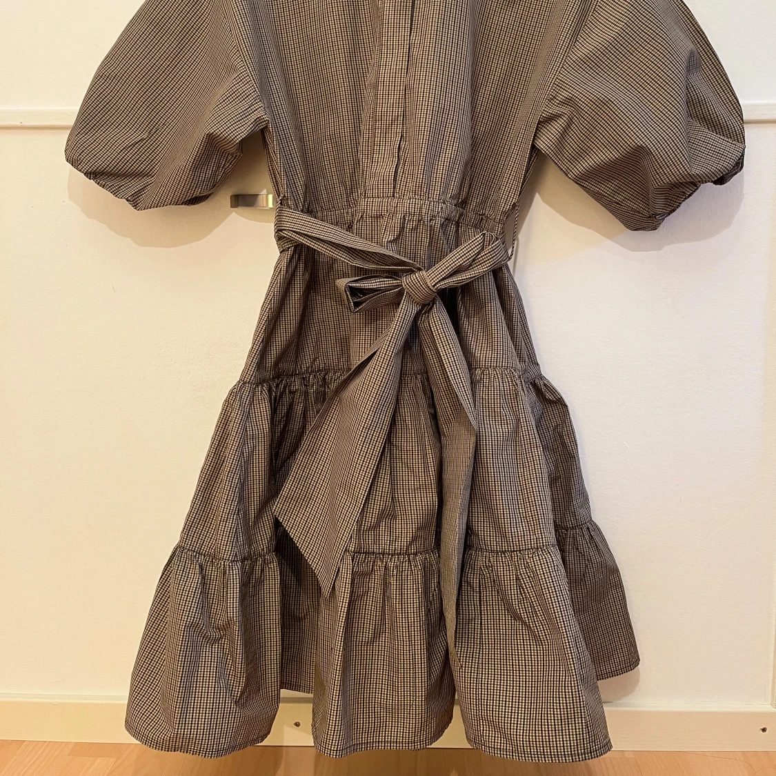 Superfin brun rutig klänning med volanger och puffiga ärmar. Klänningen har knytband i midjan och en luftig, avslappnad passform. Perfekt för dig som gillar en trendig och bekväm stil med extra volym i kjolen.❤️❤️👌🤩