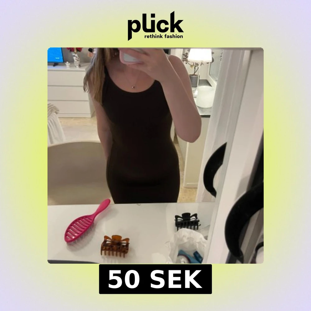 Säljer en brun, tight och klänning med rund halsringning. Klänningen är enkel och stilren, perfekt för dig som gillar en minimalistisk look. Modellen är kroppsnära och har en klassisk, rak passform.