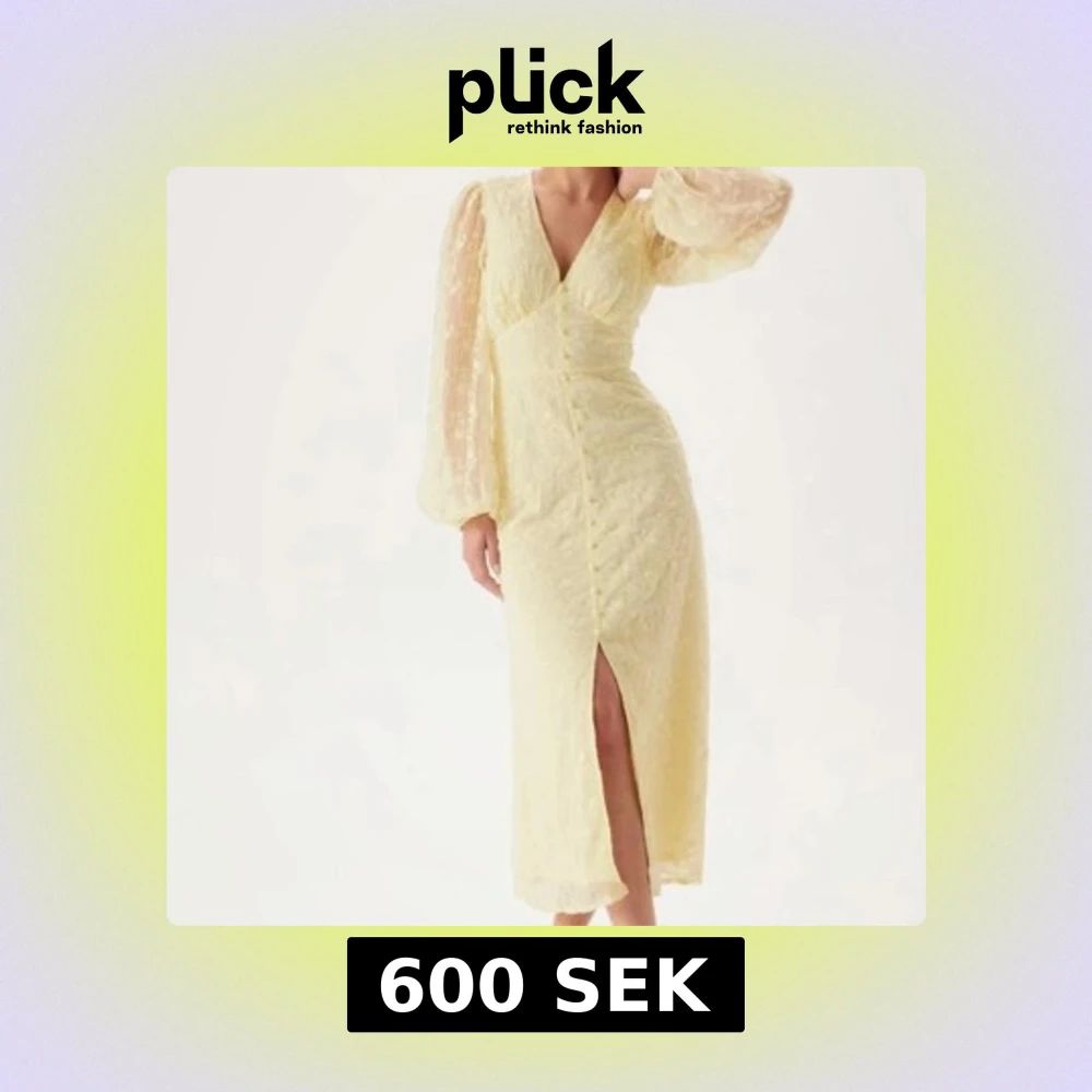 Superfin ljusgul långklänning från bubbelroom med transparenta spetsärmar och v-ringad. Använd en gång!💕