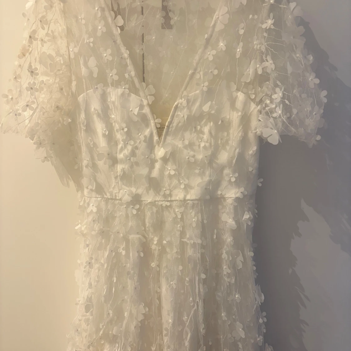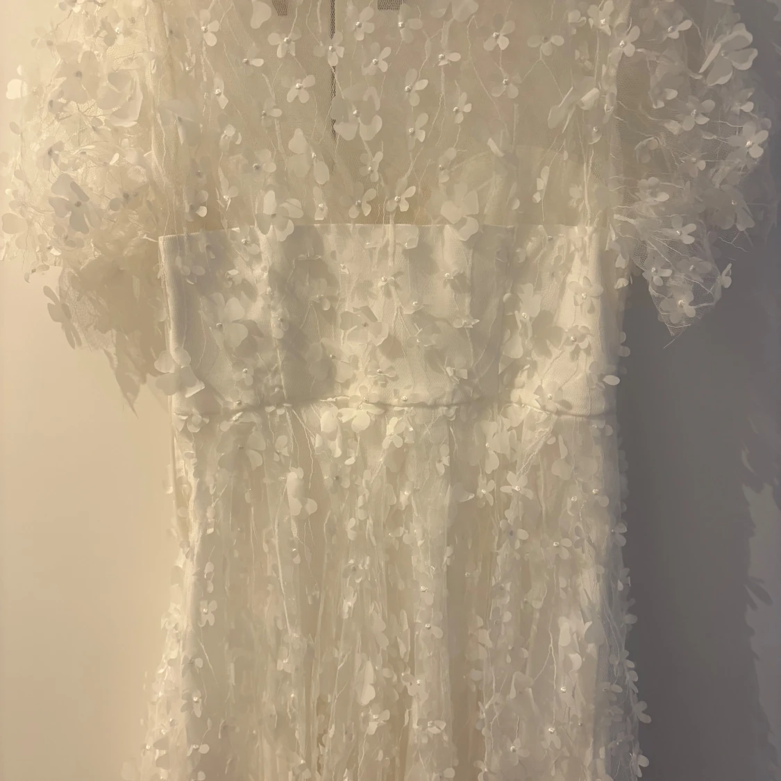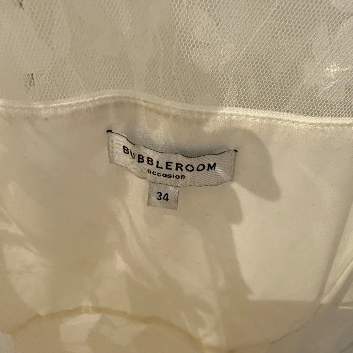 Superfin vit långklänning från Bubbleroom med detaljer och v-ringning. Endast använd på studentdagen💕💕