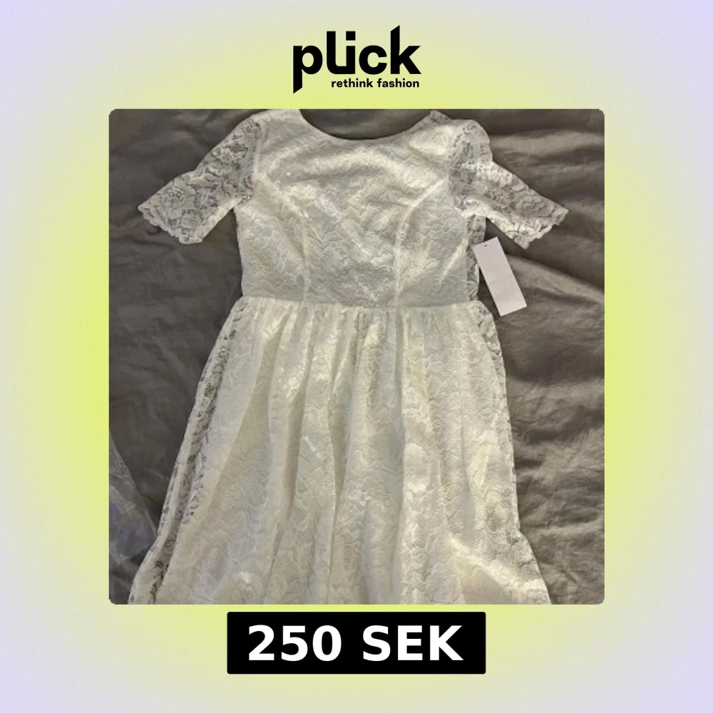 Supersöt vit långklänning från Bubbleroom med spets över hela klänningen och korta ärmar. Modellen har rund halsringning och ett flowigt fall. Öppen i ryggen. Perfekt studentklänning! Helt ny, aldrig använd