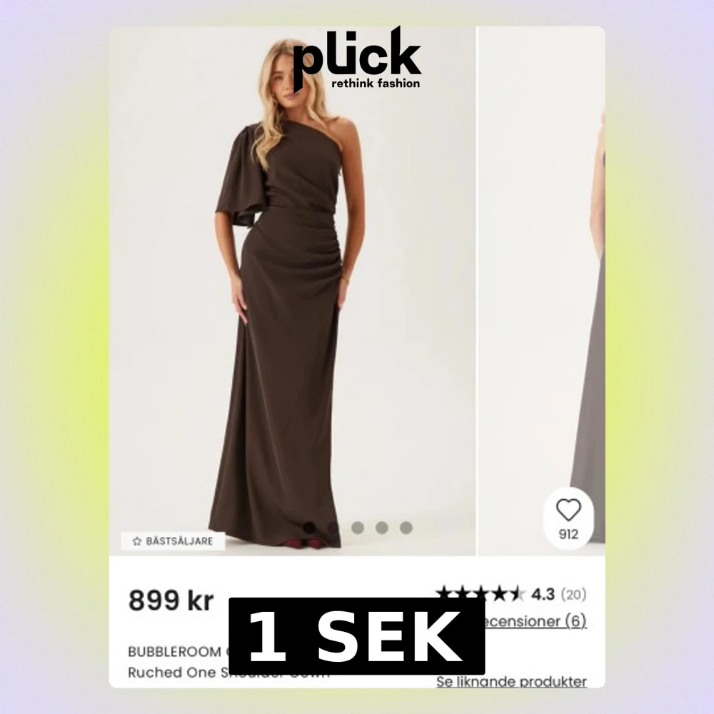 SÖKER!! Söker efter denna vackra klänning från ”Rushed one shoulder gown” från Bubbleroom i storlek 34 eller 36!