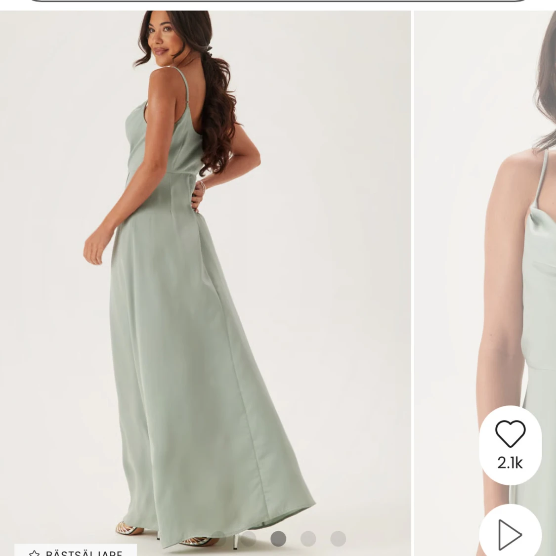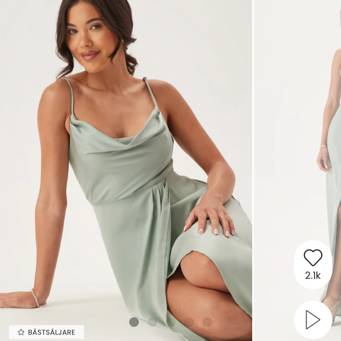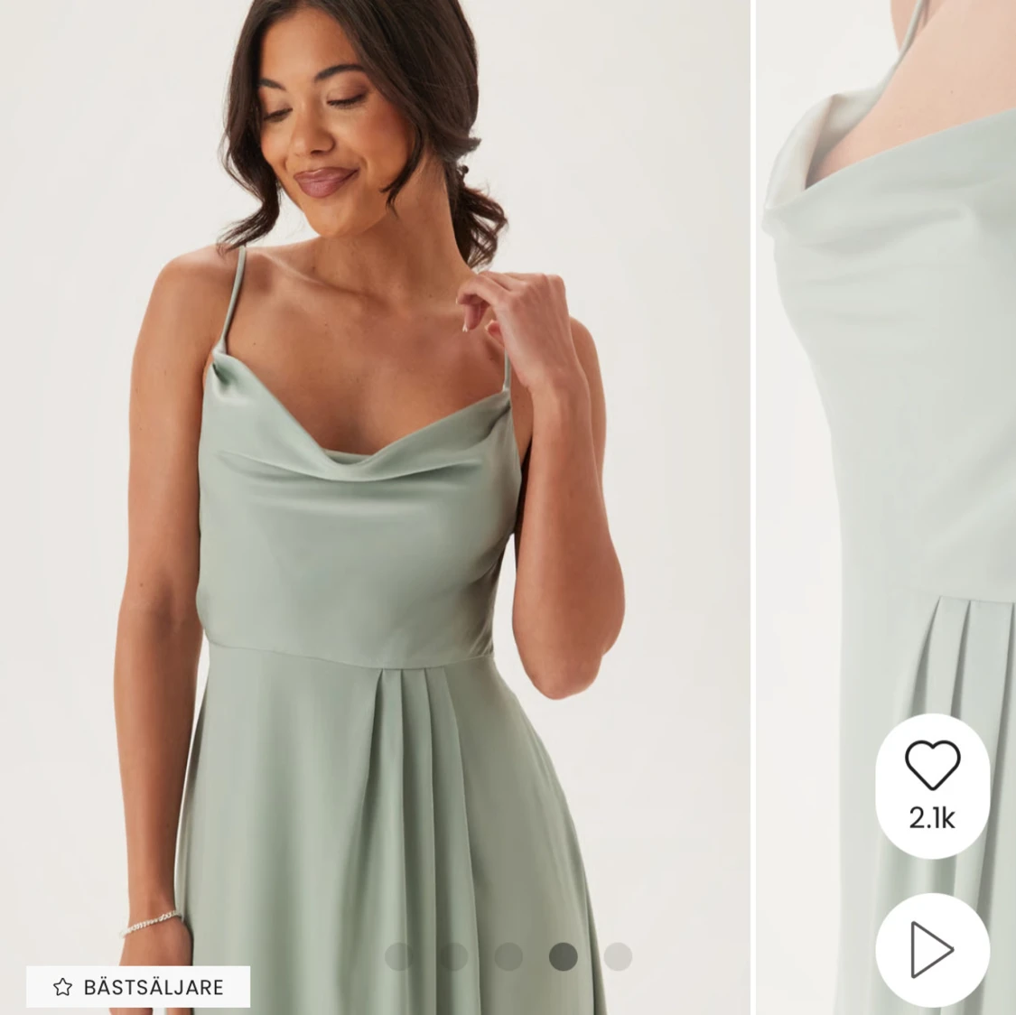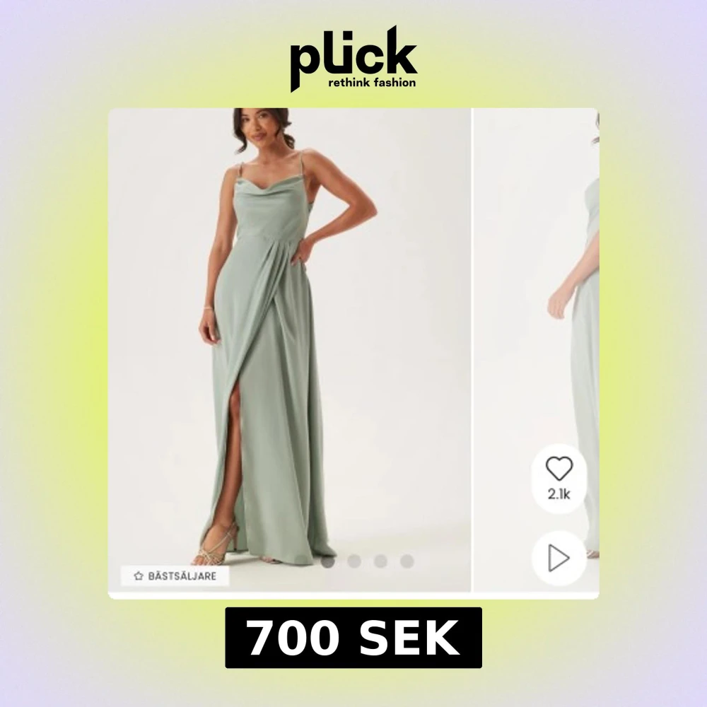 Superfin ljusgrön långklänning med tunna axelband och draperad urringning. Klänningen har omlottkänsla framtill och en snygg slits som ger extra edge. Perfekt flowigt tyg som faller snyggt och känns lyxigt. Klänningen är oanvänd och prislappen sitter kvar. Nypris 999 kr.