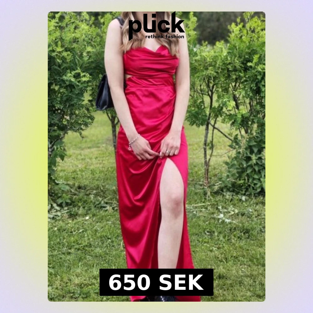 Superfin röd balklänning från bubbleroom !!❤️🔥❤️🔥Tunna axelband, ganska hög slits som syns på bilden, öppen i ryggen med en knytning. På bild två ser man banden som går bak och dom blir tunnare bak på ryggen och knyts. Hör av en vid frågor!❤️