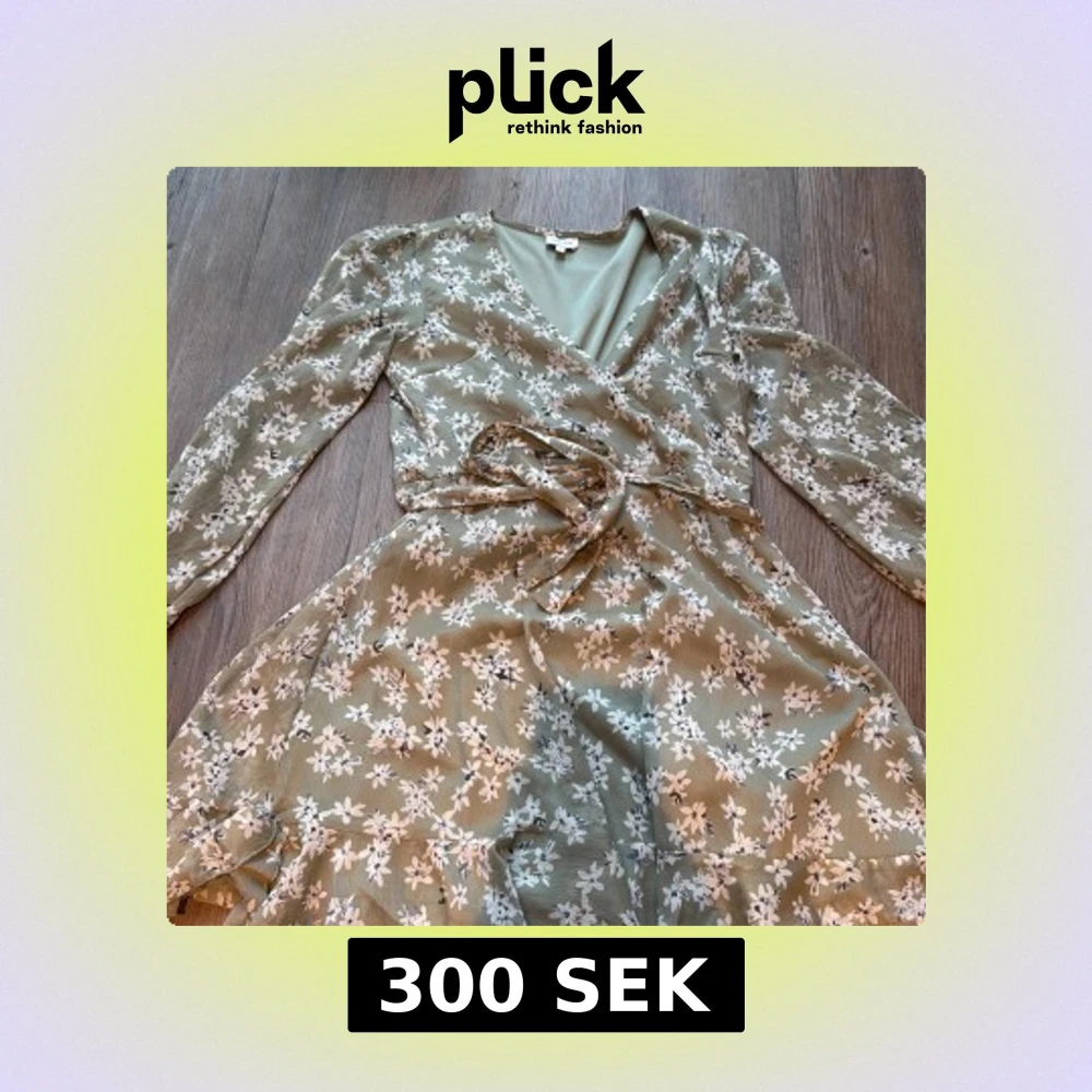 Supersöt ljusgrön omlottklänning från Bubbleroom med vita blommor, lång ärm och knytband i midjan. Klänningen har v-ringad hals och volangdetaljer längst ner. Perfekt för vår och sommar när du vill känna dig extra fin.