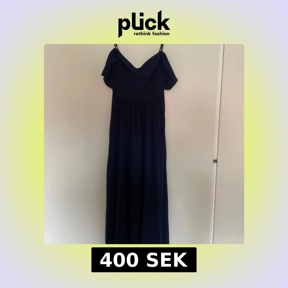 Elegant mörkblå balklänning som har använts 1 gång. Klänningen går långt ner till fot anklarna och är insydd 1 dm över bysten. På sidan finns det en dragkedja