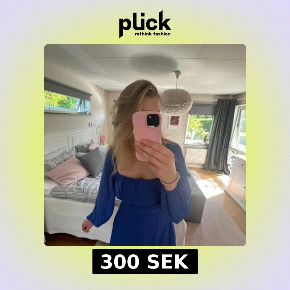 Väldigt fin mörkblå klänning med en söt rosett snörning där bak. Använd 1 gång. Kan sänka priset. 💙💙