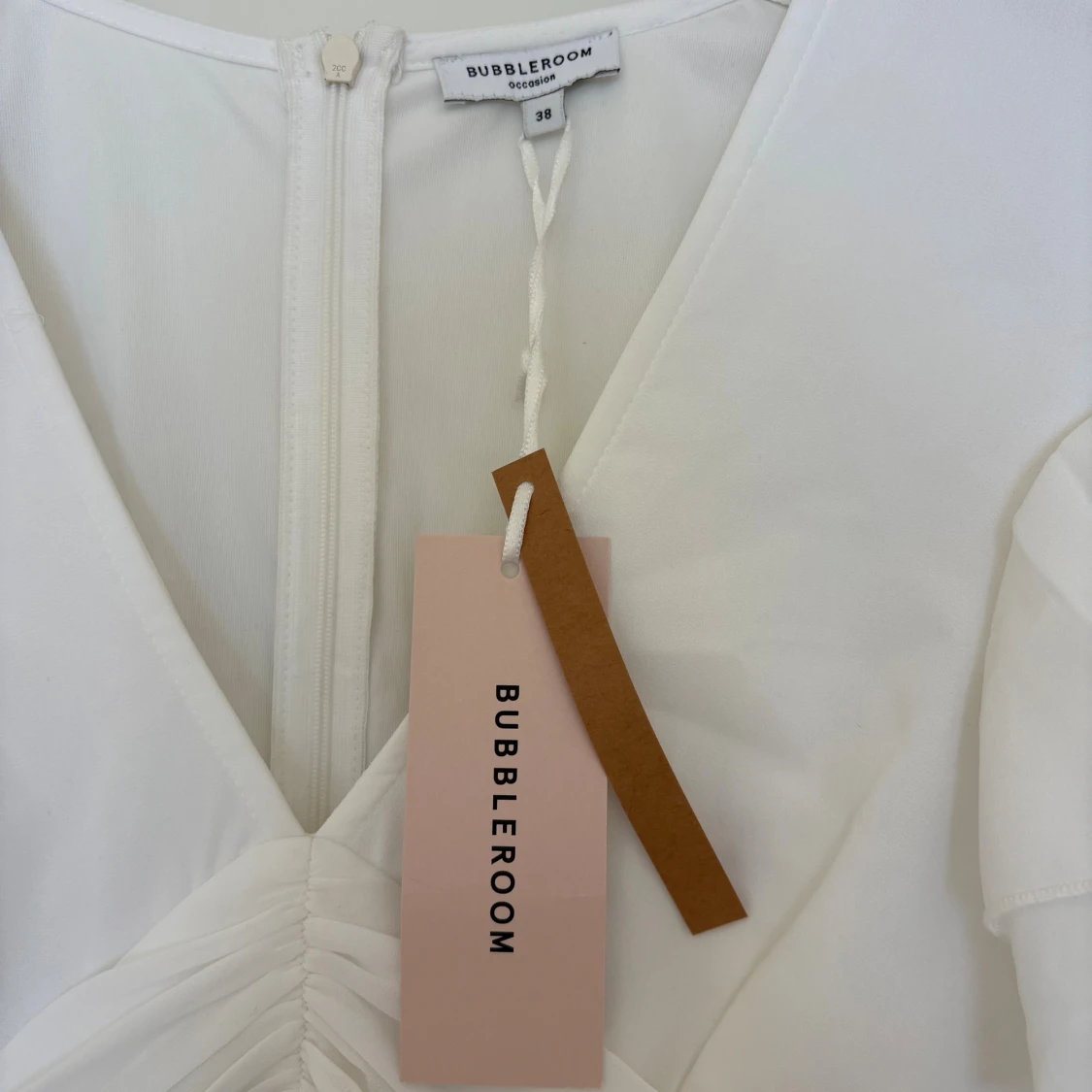 En vit studentkläning ifrån Bubbleroom i storlek 38. Aldrig använd. Nypris: 599kr.