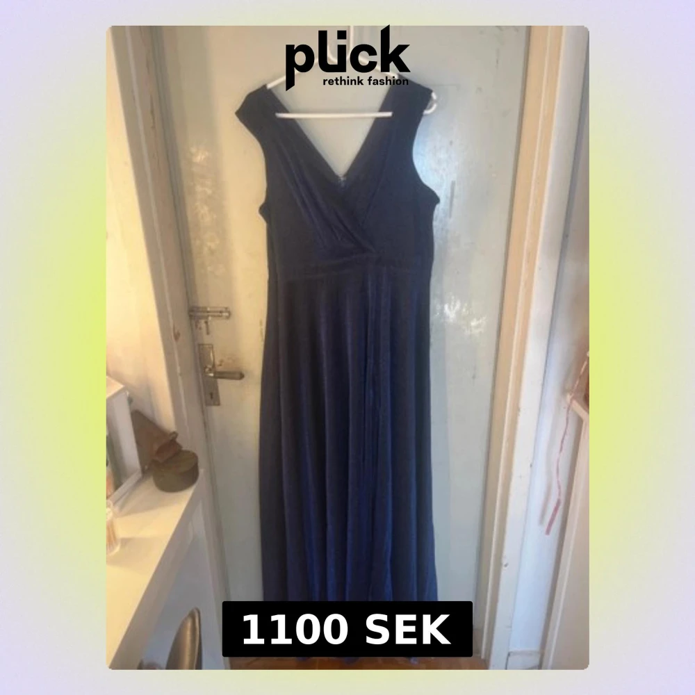 Säljer en marinblå långklänning med glittrigt tyg och v-ringad omlottdesign både fram och bak. Klänningen är ärmlös och har ett mjukt, svepande fall med foder under. Perfekt för dig som vill sticka ut med en elegant look. Köpt för ca 1300 kr och använd endast 1 kväll:)