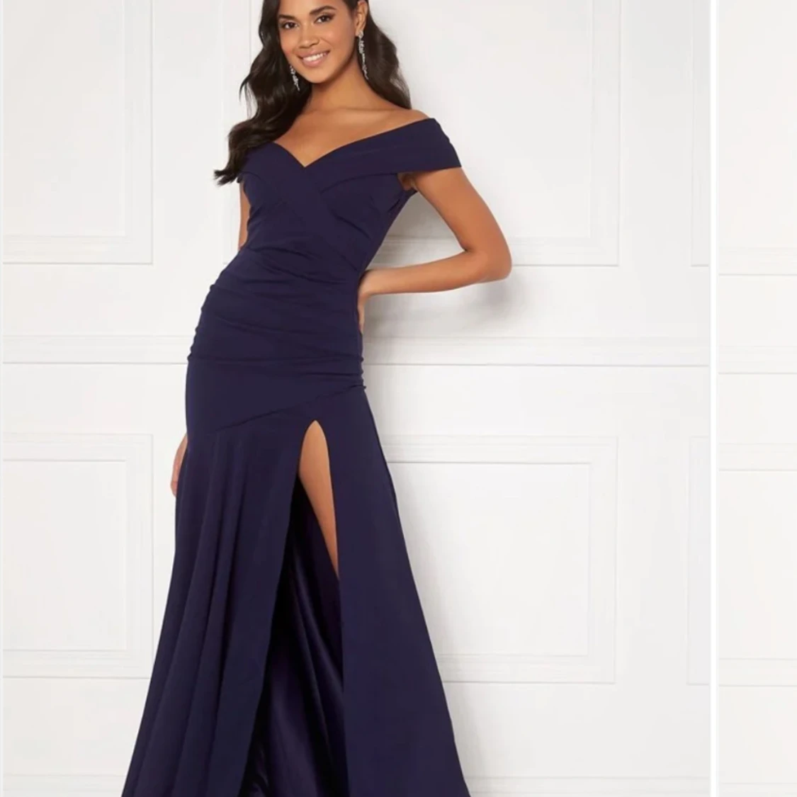 Jag säljer min balklänning! Endast använd en gång, inte defekter alls. Den är i ett lite tjockare material, vilket jag tyckte var super eftersom att min bal var på kvällen. Jättefin mörkblå färg! Hör av er med frågor och prisförslag 💕köpt för 1100kr