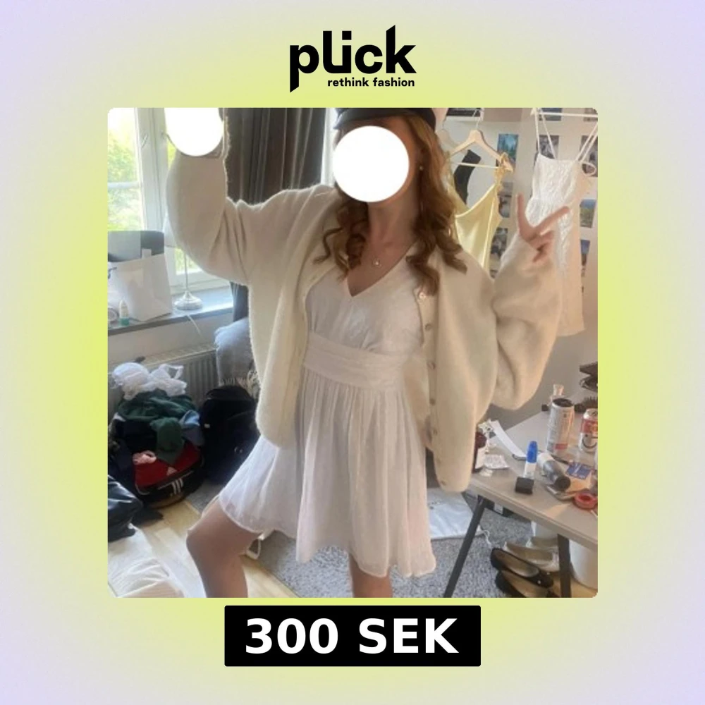 Superfin vit kortklänning från bubbleroommed diskret prickigt mönster, v-ringning och långa ärmar. Klänningen har knyt i ryggen och markerad midja som ger en snygg siluett. Perfekt till student eller sommarens alla tillfällen! Använd en gång och är i mycket bra skick! Bara att skriva vid frågor! 😊