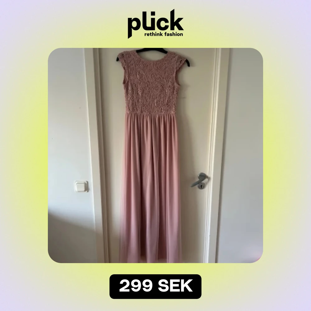 Säljer en superfin rosa långklänning från Bubbleroom. Klänningen har ett vackert spetsmönster på överdelen och är ärmlös. Den har en elegant öppen rygg och är perfekt för festliga tillfällen. Materialet känns lyxigt och faller snyggt.