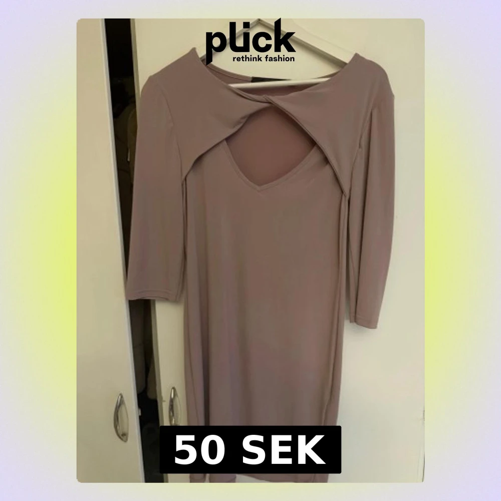 Säljer en ljuslila kortklänning med unik omlottdetalj och cut out vid bröstet. Klänningen har trekvartsärm och är gjord i ett mjukt, stretchigt syntetmaterial. Perfekt för dig som gillar stilrena men ändå speciella plagg.