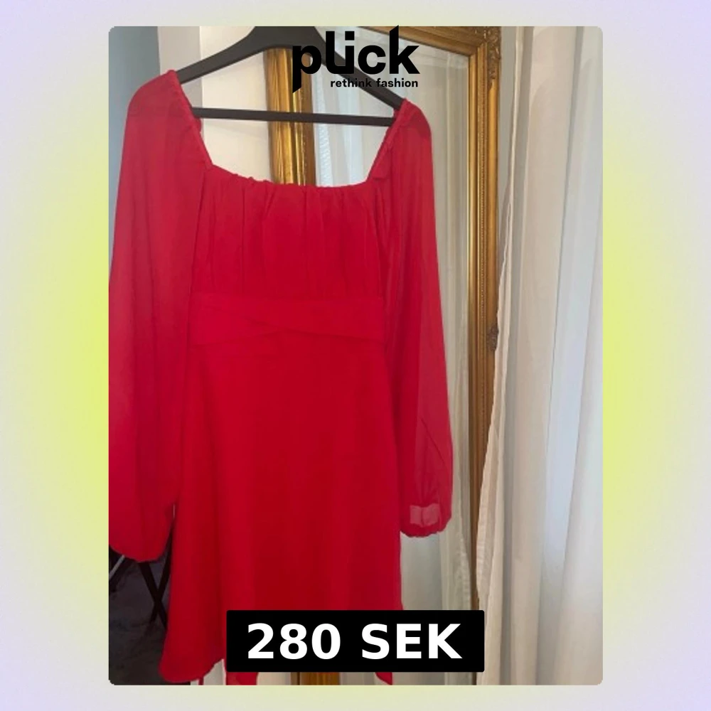 Röd oanvänd klänning endast testad, saknar pris lapp. Storlek 38 från bubbelroom, original pris 600kr