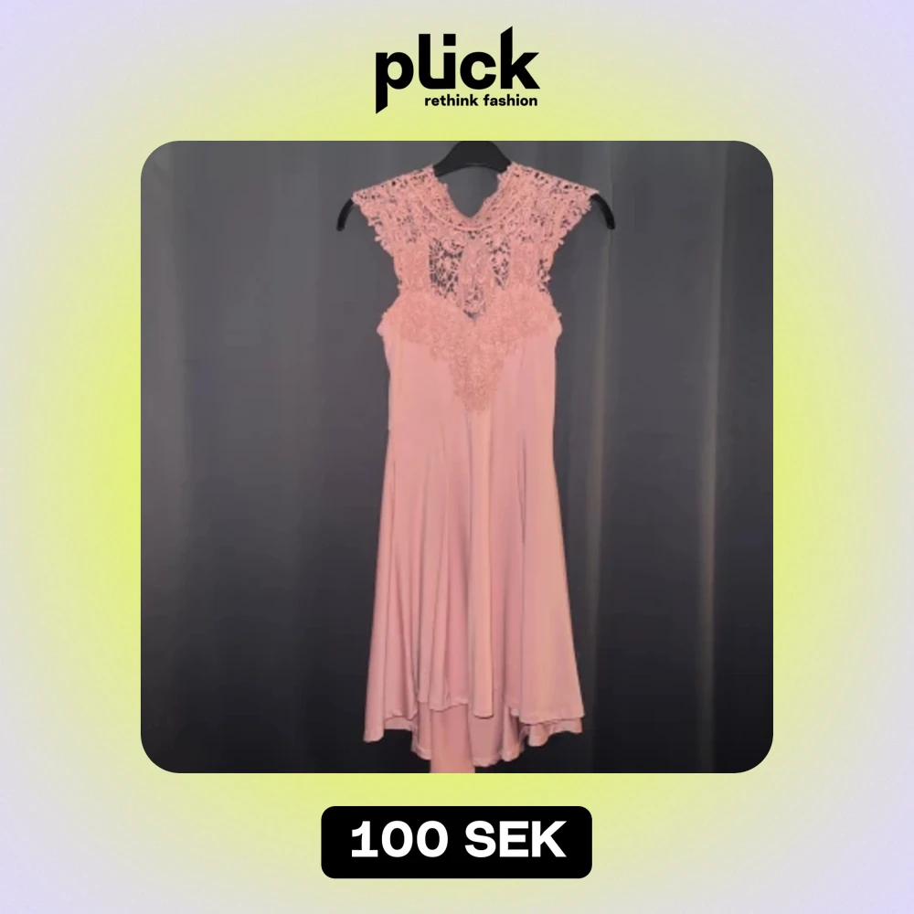 En elegant rosa klänning från Bubbleroom med spetsdetaljer på överdelen och en knytning i ryggen. Klänningen har en ärmlös design och en flödande kjol som slutar strax ovanför knäna.