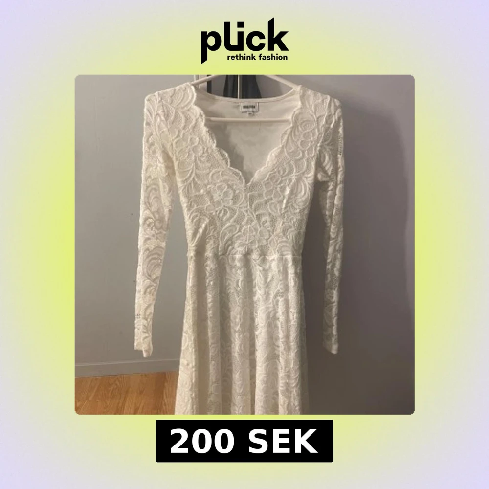 Superfin vit klänning från Bubbleroom med lång ärm och v-ringad hals. Klänningen har ett vackert blommigt spetsmönster och är helfodrad. Perfekt för dig som vill ha en romantisk och elegant look. Sitter snyggt i midjan och har en lätt utställd kjol.