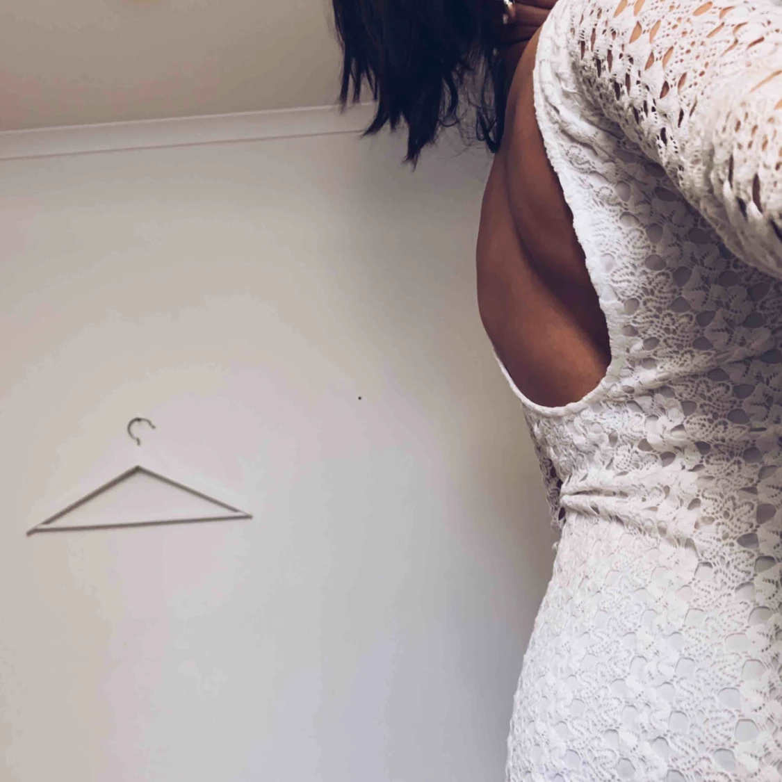 Vit klänning i spets. Använd en gång, perfekt till student/sommaravslutning eller sommarklänning! Sätter sig efter kroppens passform, storlek: S. Köparen står för frakt.