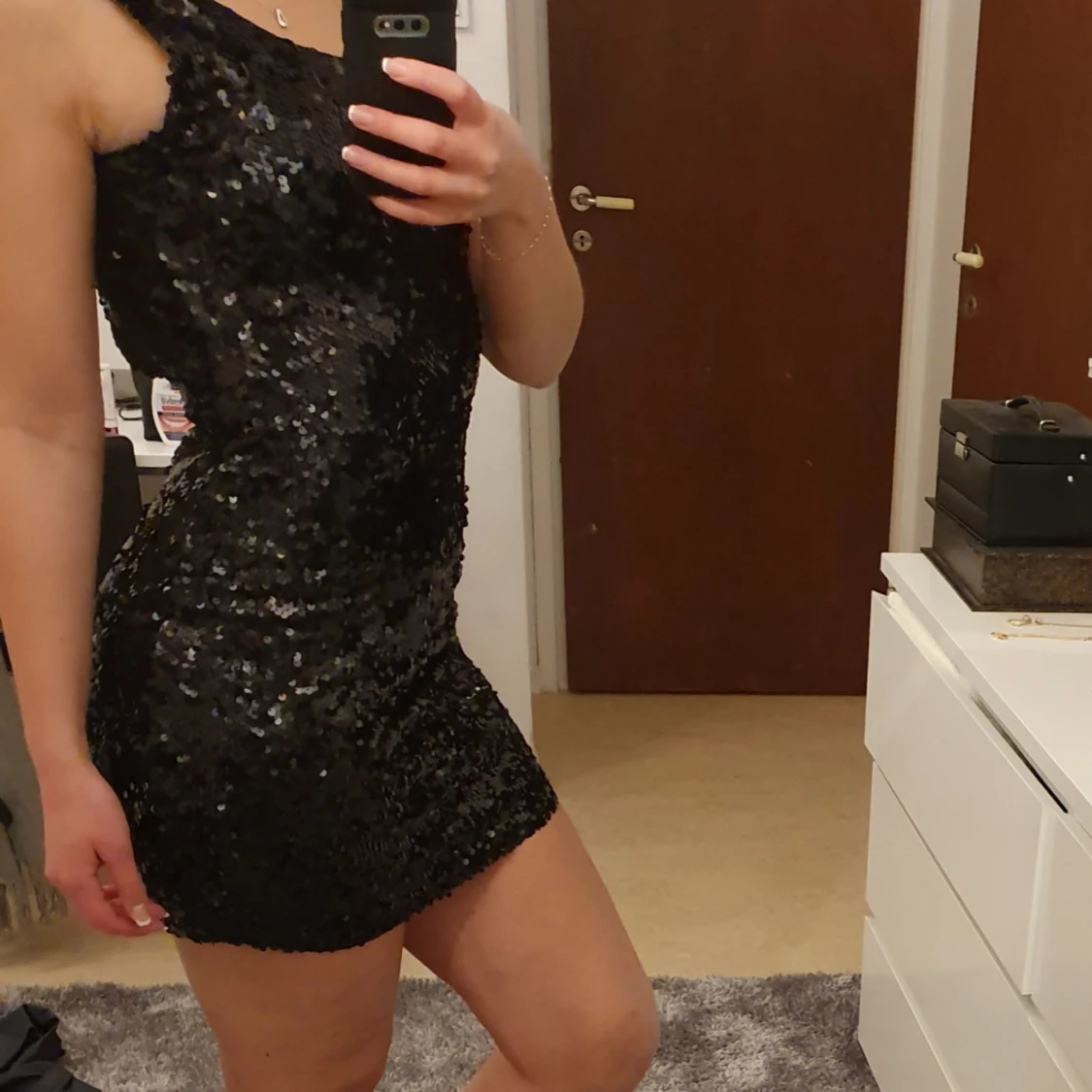 Paljettklänning från bubbleroom storlek XS dock strechig då jag själv i normala fall har S.