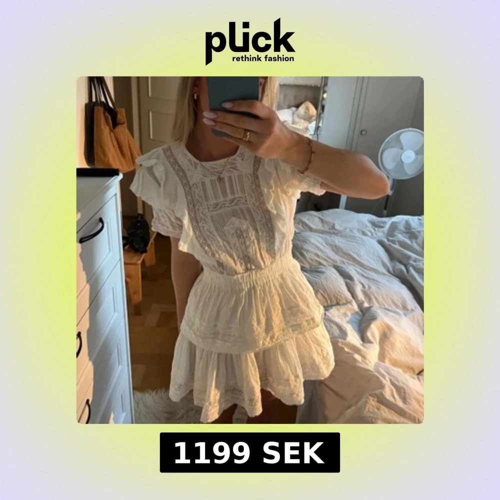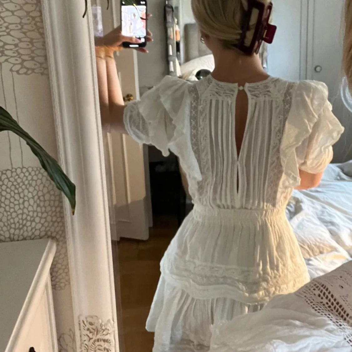 Superfin vit kort volang klänning! Står ingen storlek men jag skulle säga att den är i M!💗den är i väldigt bra skick, utan defekter vad jag kan se! Perfekt till studenten❤️