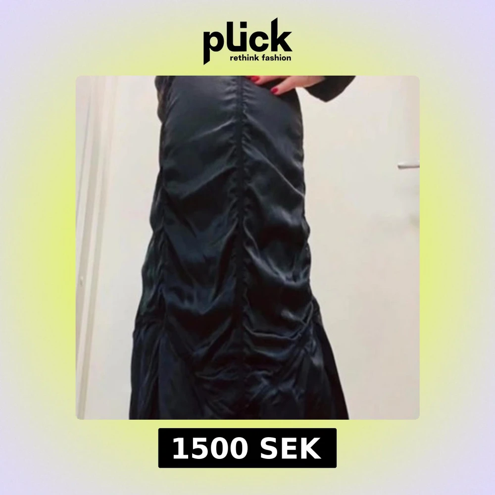 Supersnygg svart långklänning från By Malene Birger i glansigt material. Klänningen har långa ärmar, markerad midja och coola rynkade detaljer längs hela längden. Perfekt för dig som vill sticka ut med en elegant och trendig look. Aldrig använd.