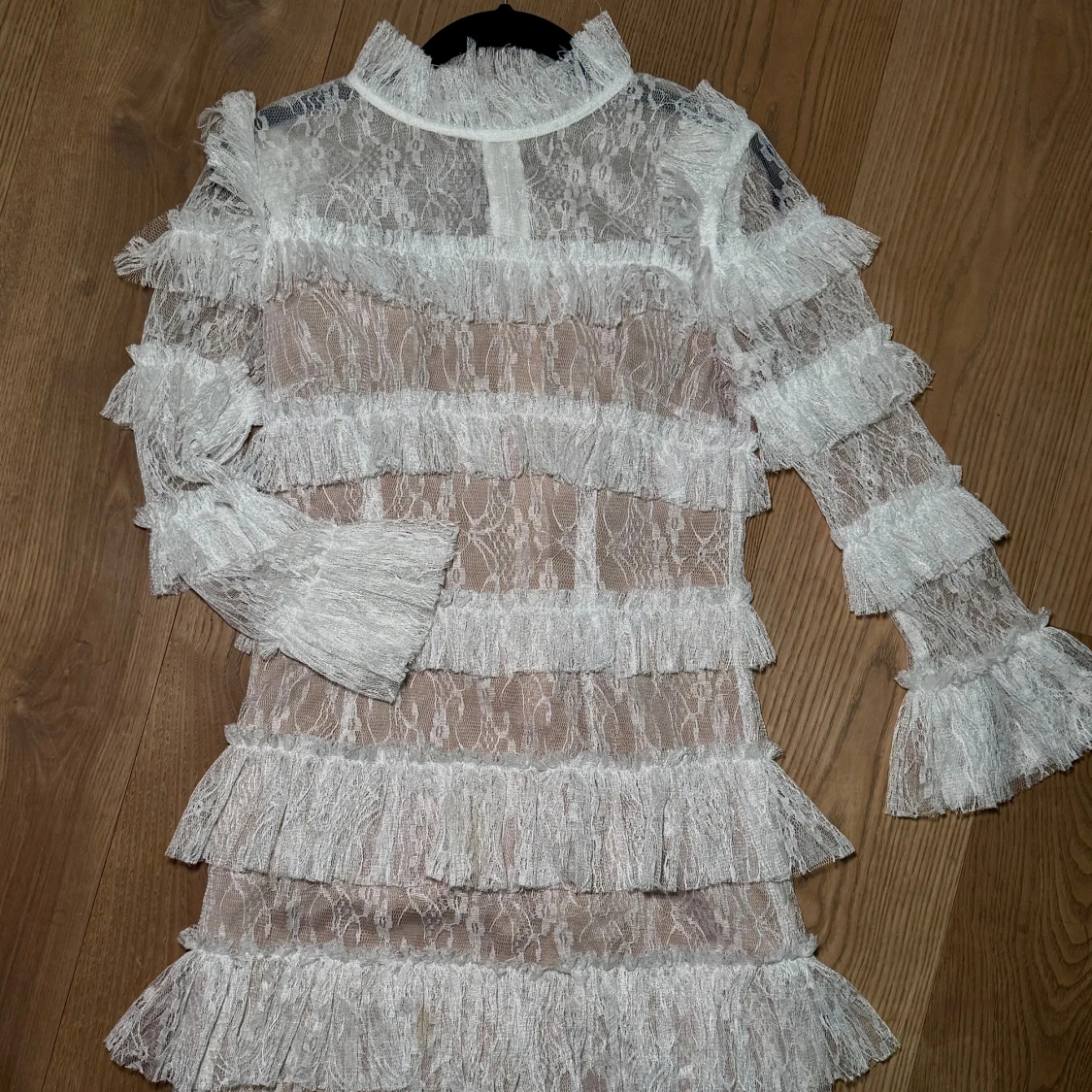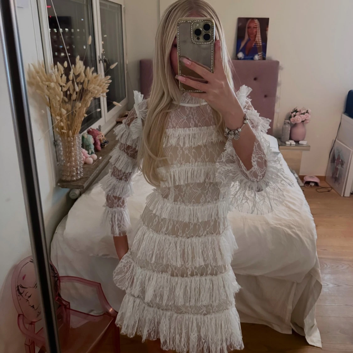 Jättefin By Malina-klänning 🤍 Elegant spetsklänning med volangdetaljer. Perfekt som studentklänning!! Endast använd en gång, i nyskick! Nypris ca 2800 kr, säljer för 2000kr, men priset kan diskuteras. - Passar XS Skriv privat för fler bilder eller frågor 🫶🏽