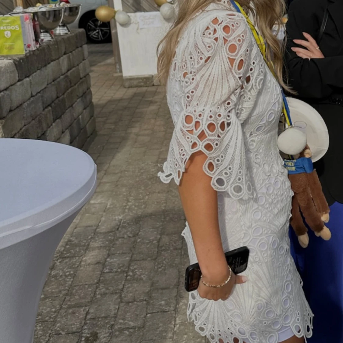 säljer nu denna fina klänning då studentdagen är förbi, inga defekter och endast använd en gång🫶🏼storlek L men passar allt från S-L, är 172 och brukar bäda M i kläder