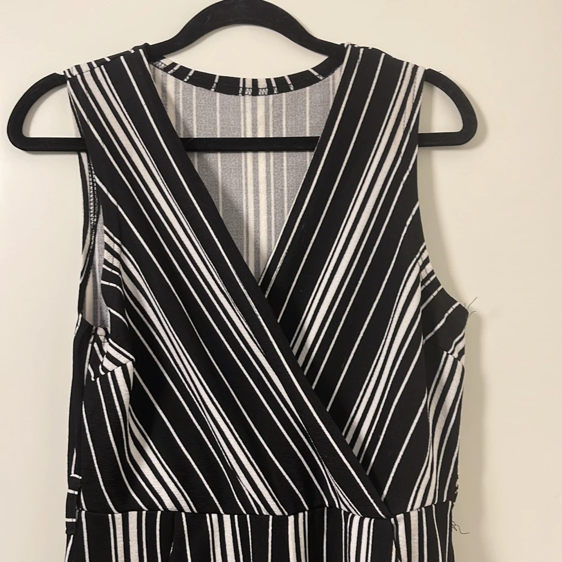 Svart/vit randig byxdress med fickor. Storlek xs