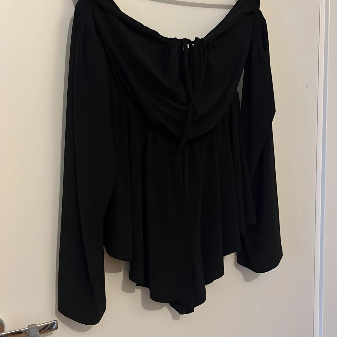Helt oanvänd byxdress i polyester med resår i midjan, off-shoulder och knytning upptill. Superfin men har aldrig kommit till användning