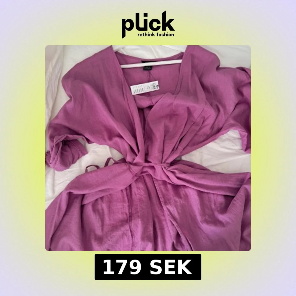 Säljer en lång, lila omlottklänning från Lindex i storlek S. Klänningen har långa ärmar med resår vid ärmslut, knytband i midjan och djup v-ringning. Tillverkad i svalt linne, perfekt för varma dagar. Enkel och stilren design med snygg passform. Material i lin. Helt oanvänd med prislapp på.