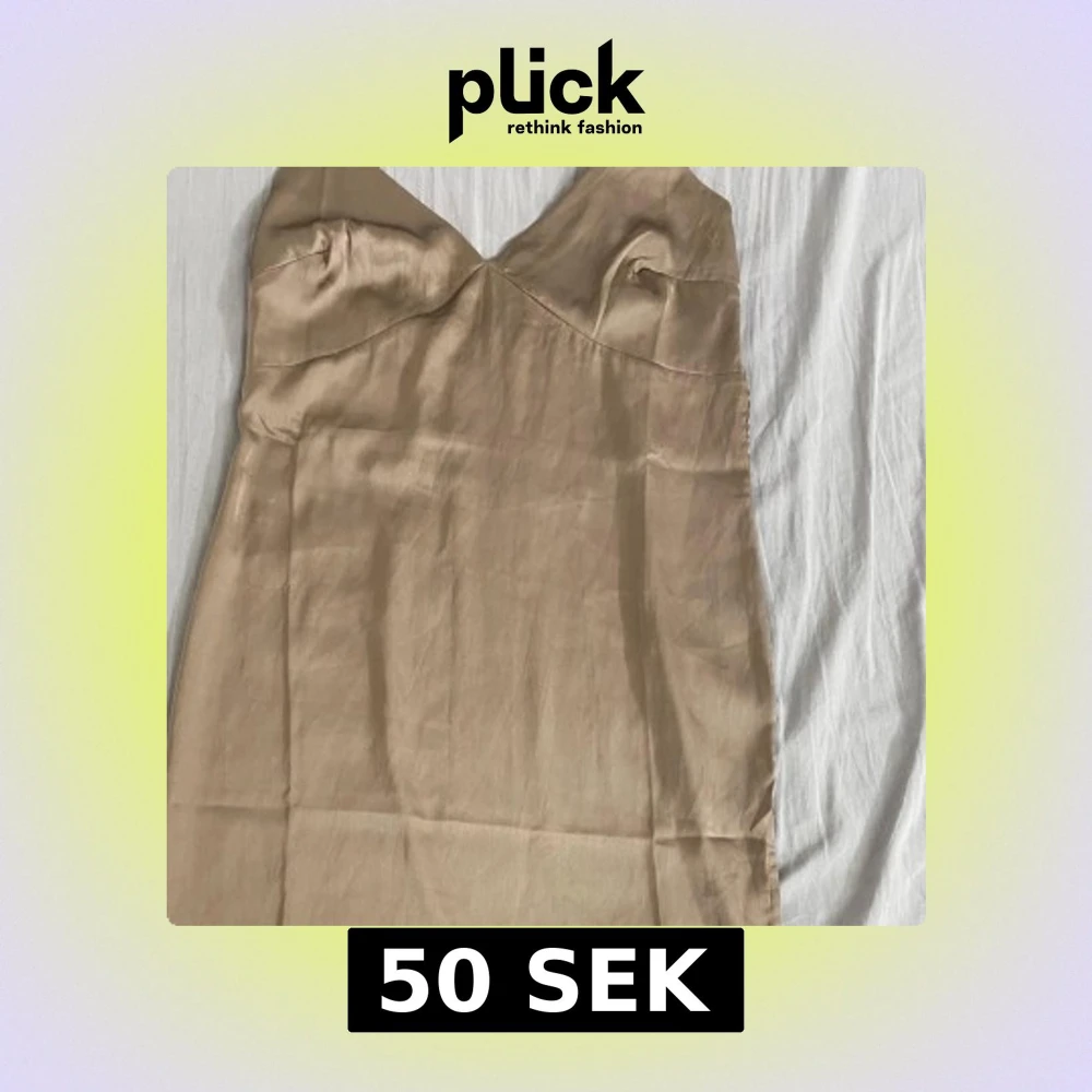 Elegant champagnefärgad klänning från Bubbleroom i ett glansigt material. Klänningen har en v-ringad design och är ärmlös, vilket ger en stilren look. Perfekt för speciella tillfällen.