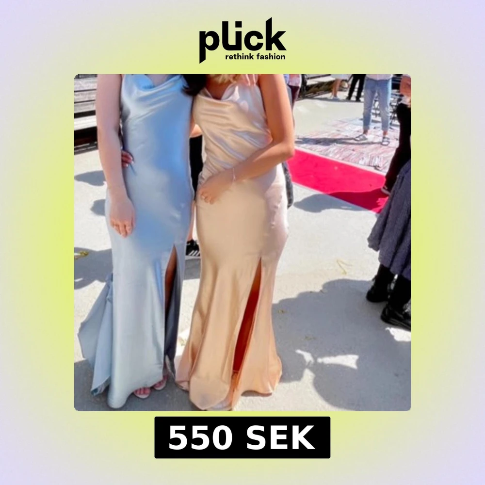 Jätte fin champagnefärgad långklänning i satin med slits! Perfekt för balen!! Klänningen har några få fläckar, kom privat för bilder! Tryck inte köp nu, Buda!!