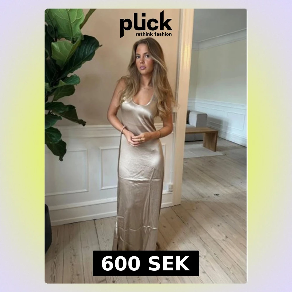 Säljer en champagnefärgad glansig långklänning från design by si i satin. Klänningen har ärmlös design med rundad halsringning och en mjuk, följsam passform. Klänningen är helt oanvänd, prislapp finns kvar. Klänningen är perfekt till nyår.