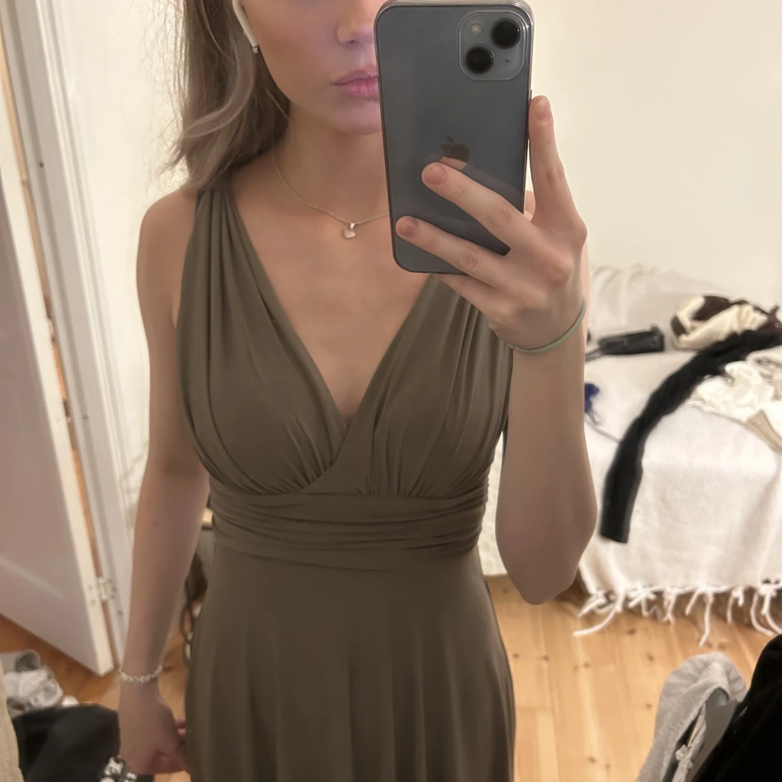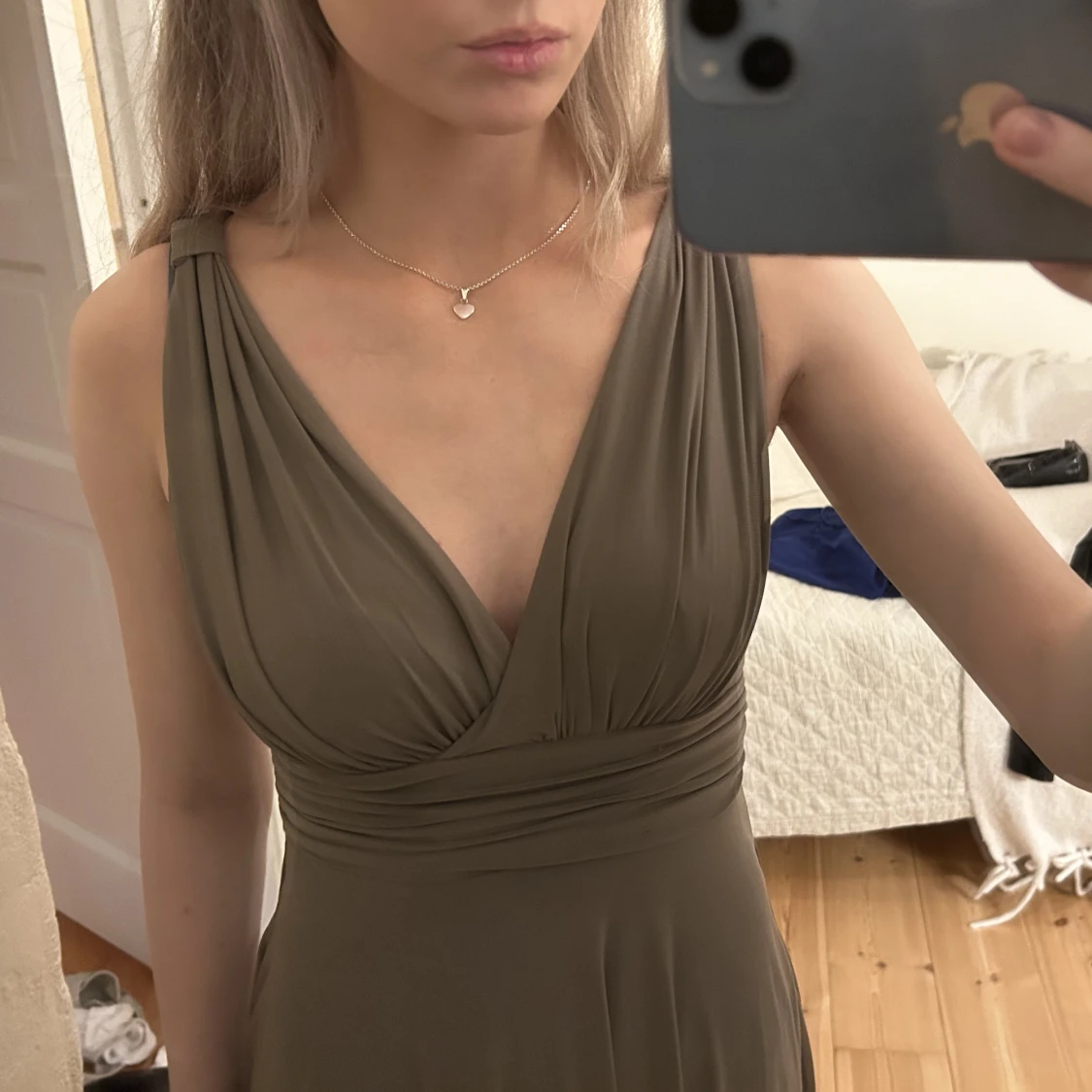 Vacker balklänning i beige/grå färg. Endast använd en gång. Elastiskt material vilket gör att den sitter figurnära och snyggt. 400kr. Märker är Chiara Forthi Milano. Postas eller möts i Uppsala Säljer fler kläder, vid köp av mer kan paketpris ordnas.