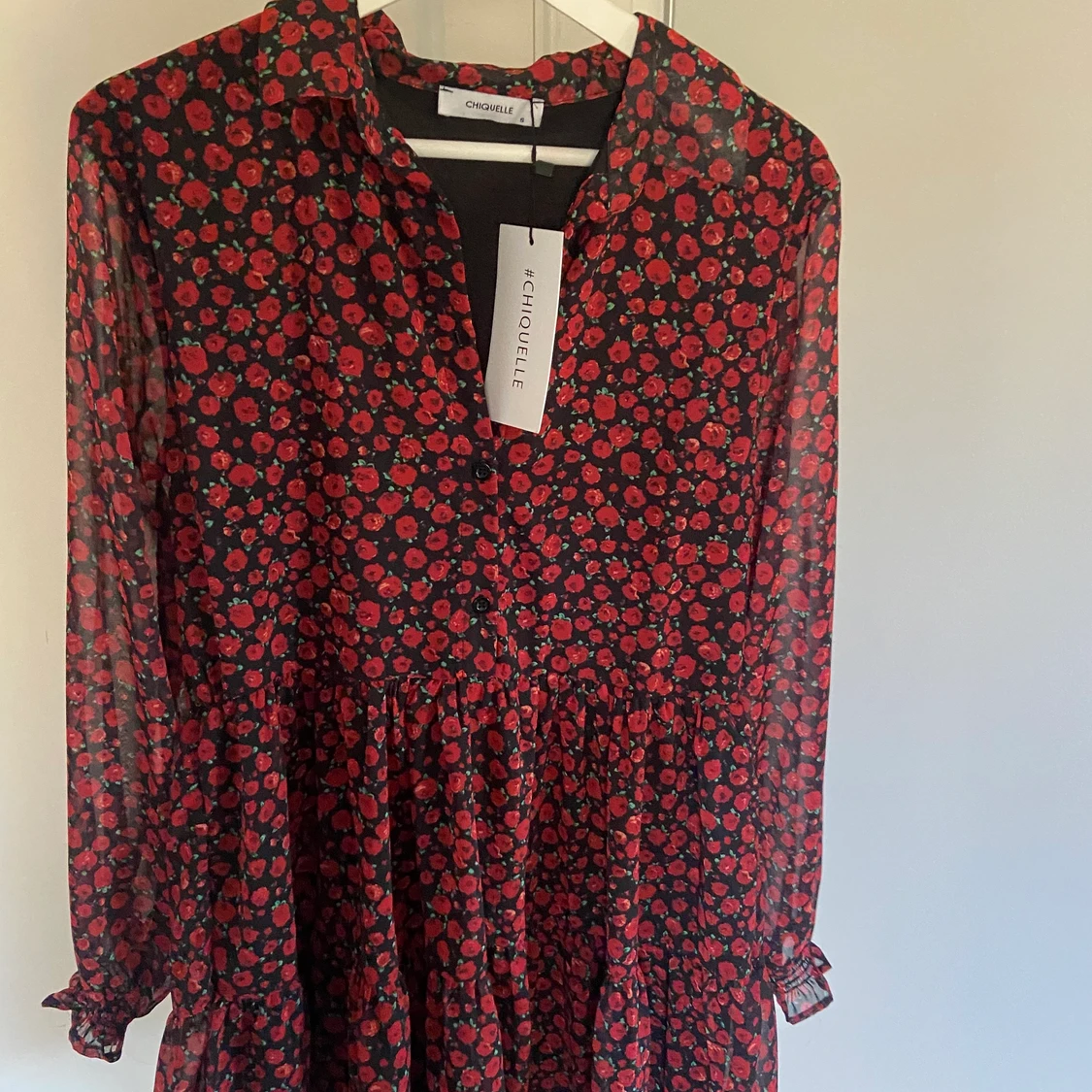 Jättesöt rödblommig klänning från chiquelle, helt oanvänd. (Ordinarie pris 499kr) frakten tillkommer! 🥰❤️