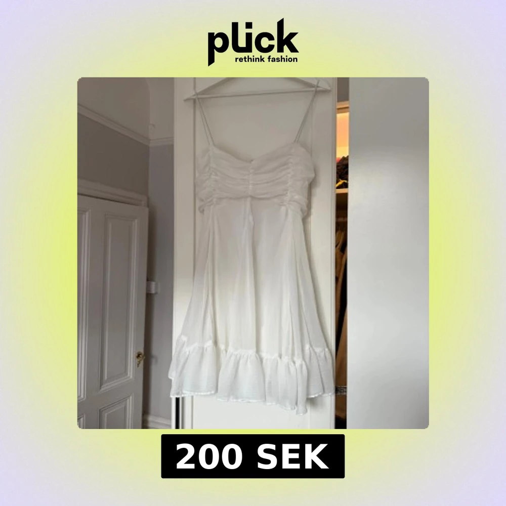 Superfin vit kortklänning från Chiquelle med tunna axelband, rynkad överdel och volangkant nertill. Klänningen passar dig som kan ha M/L. Klänningen skulle används till min student men det blev tyvärr inte så. Den har däremot används vid 2 andra tillfällen!🩷
