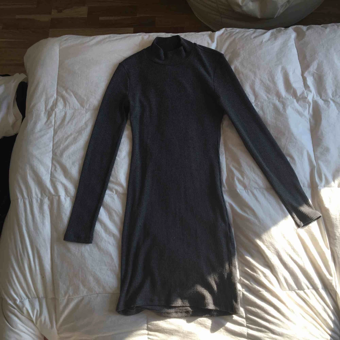 Tight klänning i mörkare grå. Strl. S men passar även XS och M då det är ett väldigt stretchigt material. Halv Polo. Använd en gång. Köpt för 500kr. Betalning sker via swish