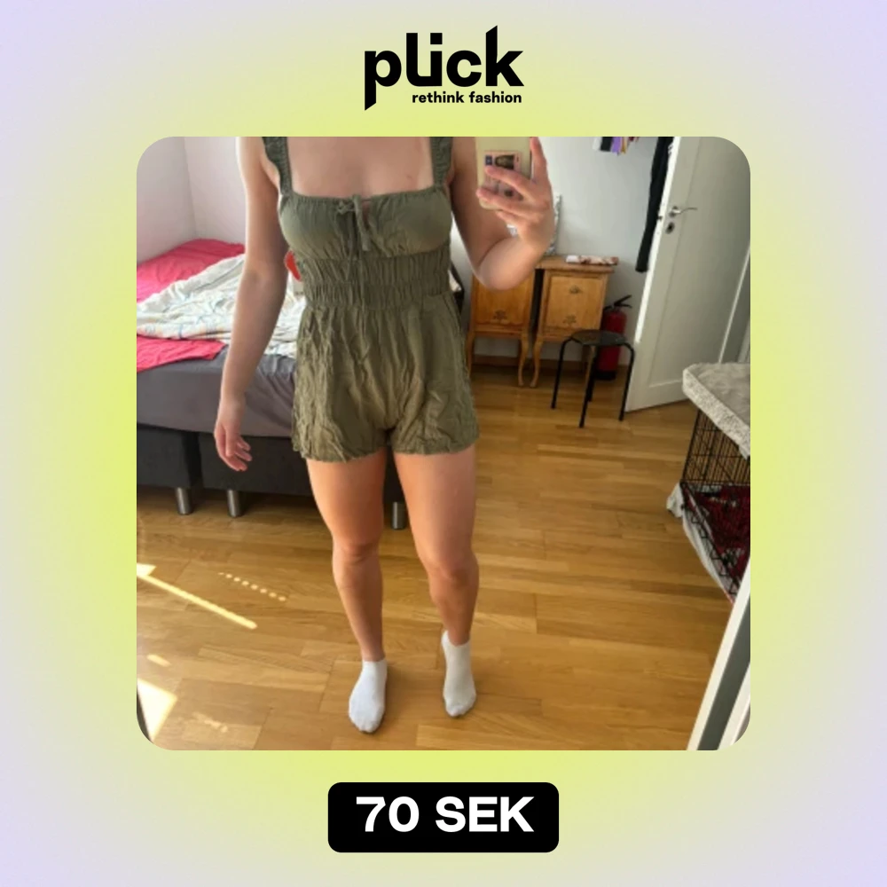 En playsuit grön helt nu endast testad säljer pga för liten Beställde i L men skulle säga storleken är mellan s/m