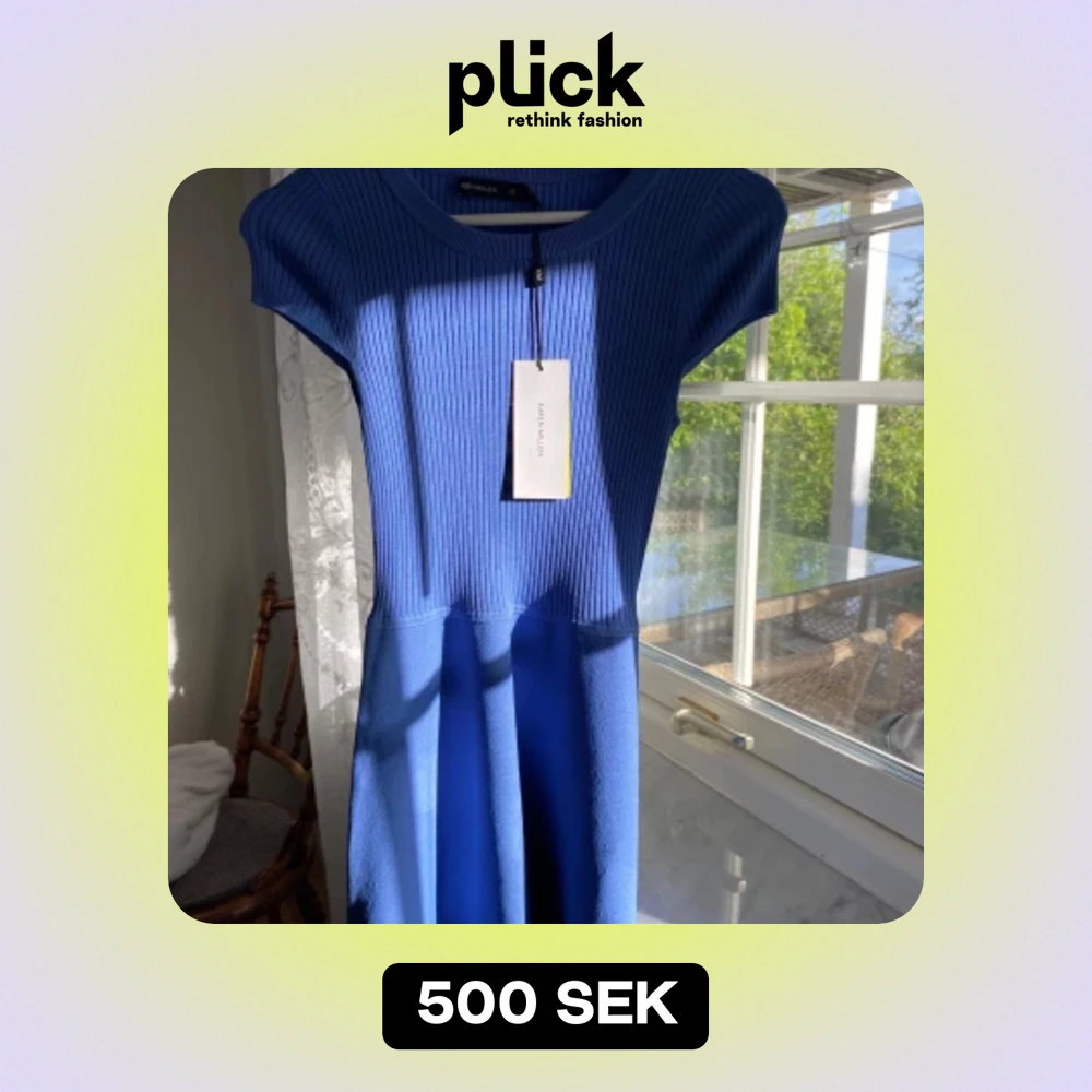 Blå ribstickad klänning från Karen Millen. Aldrig använd med prislapp kvar. Originalpris 1699kr, köpt på NK i Göteborg.
