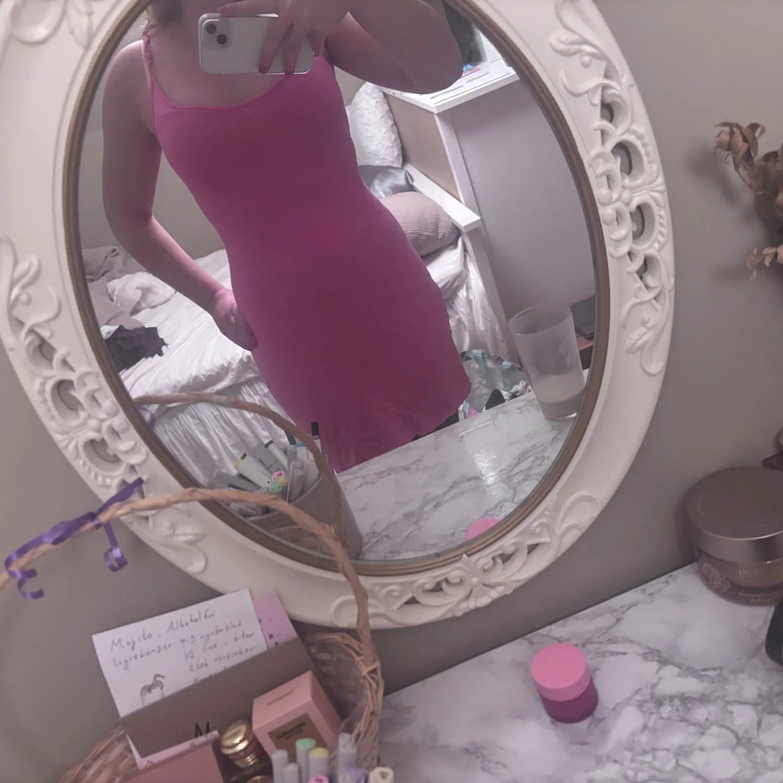 Enkel och snygg rosa kortklänning med smala axelband och figurnära passform. Klänningen är ärmlös och har en klassisk, rak siluett som framhäver kroppen. Perfekt för dig som gillar en stilren och ungdomlig look. Bara använd en gång!