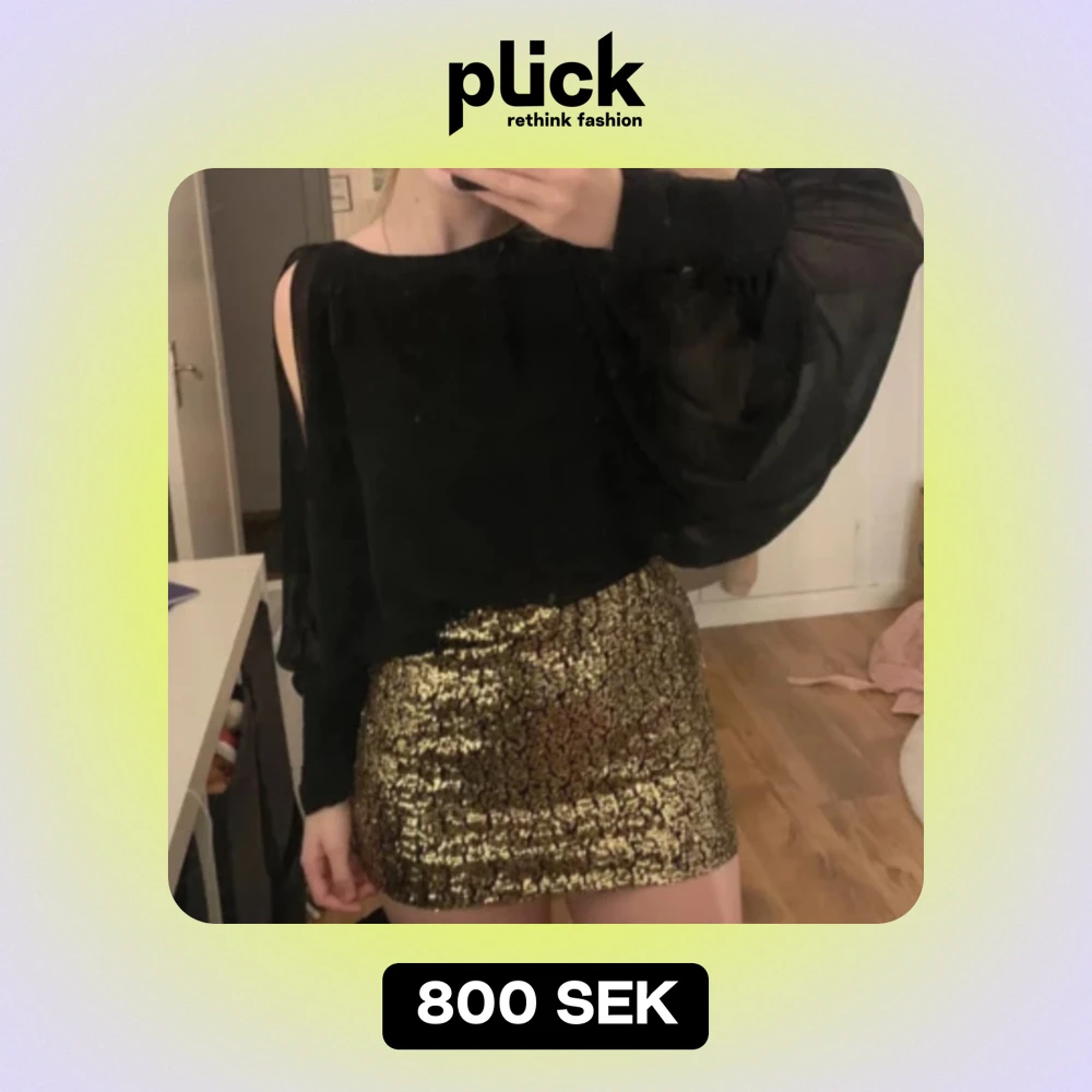 Aldrig använd. Öppna armar och knappar längst ner på armarna. Storlek 6/ XS. Guldiga paljetter.