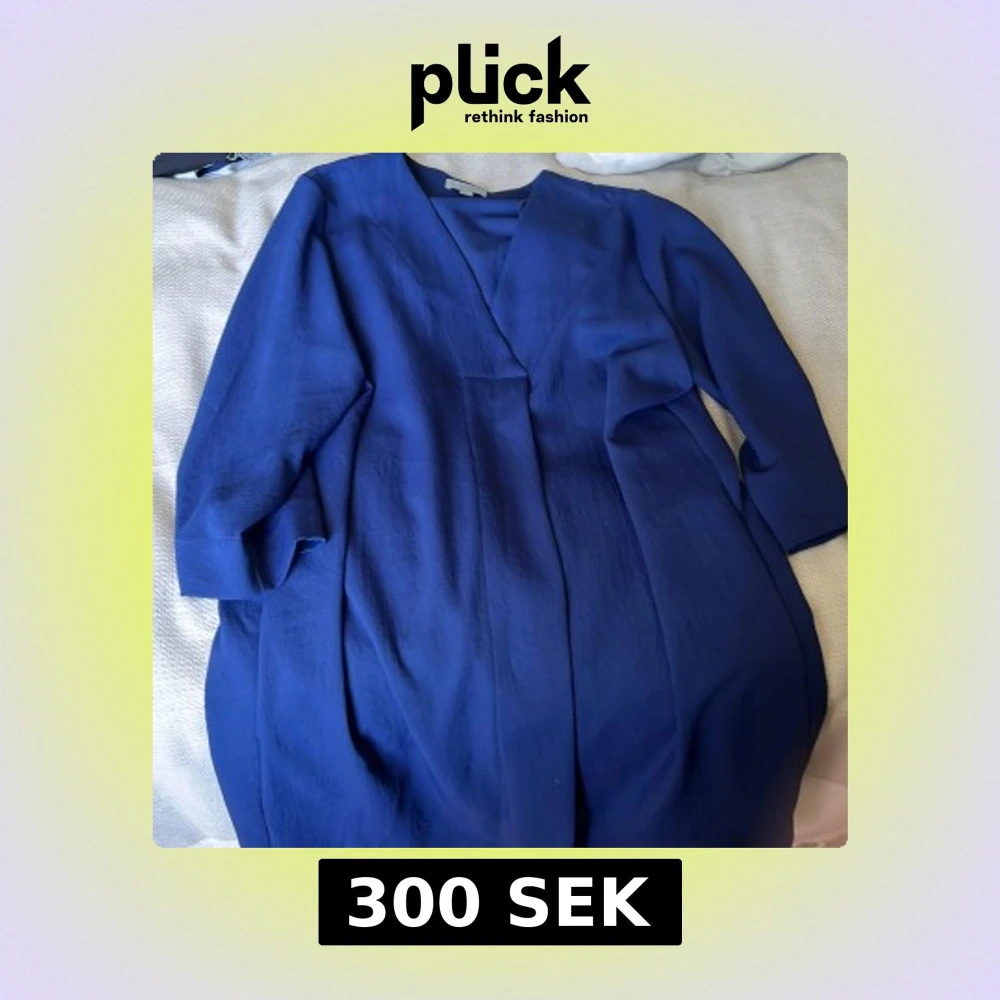 Snygg mörkblå omlottklänning från COS i storlek 44. Klänningen har trekvartsärm och en stilren v-ringning. Den har en loose passform och är perfekt för dig som gillar minimalistisk design och rena linjer.