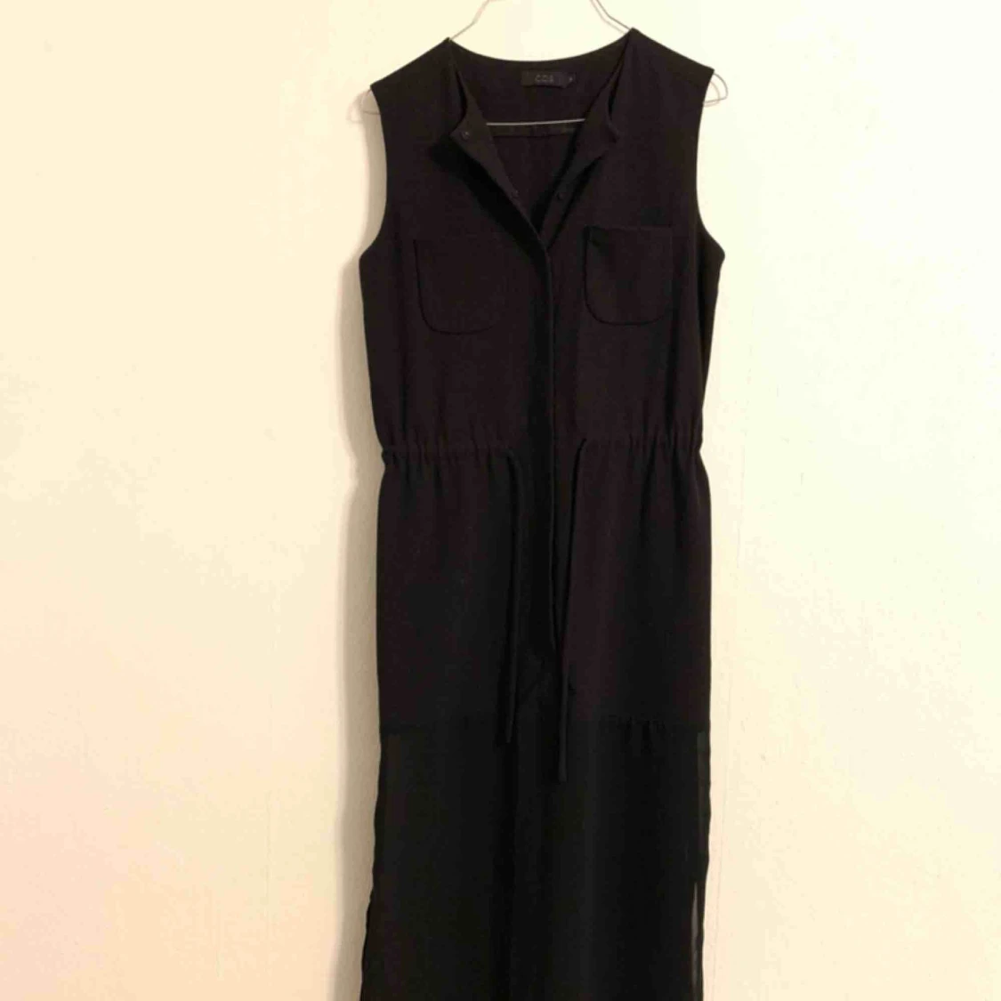 Klänning ifrån Cos. Dragsko i midjan och transparent ner till.