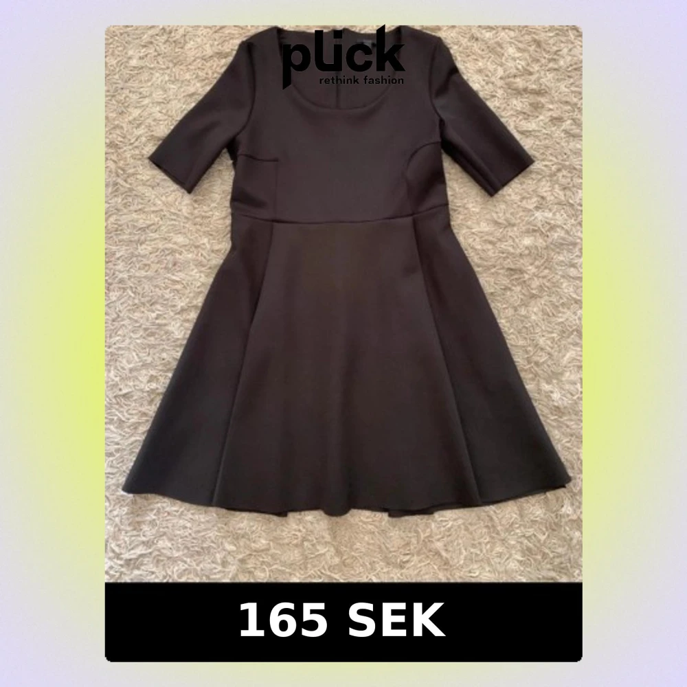 Stilren svart klänning från COS med rund halsringning och halvlånga ärmar. Klänningen har en lätt utställd kjol och dragkedja i ryggen. Tillverkad i ett slätt material som ger en snygg siluett.